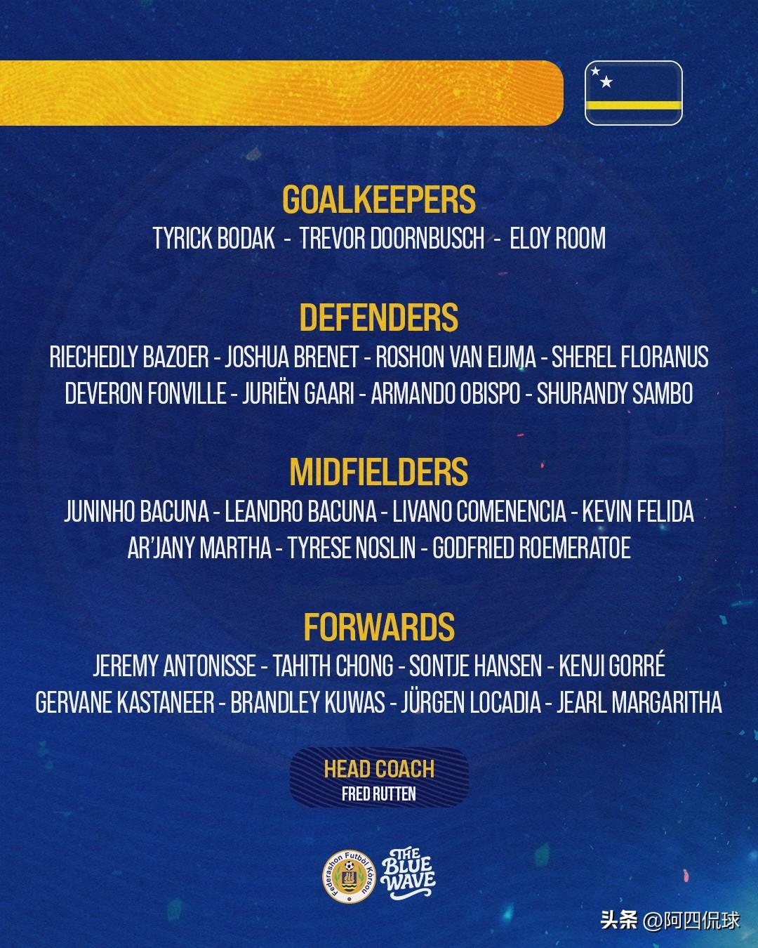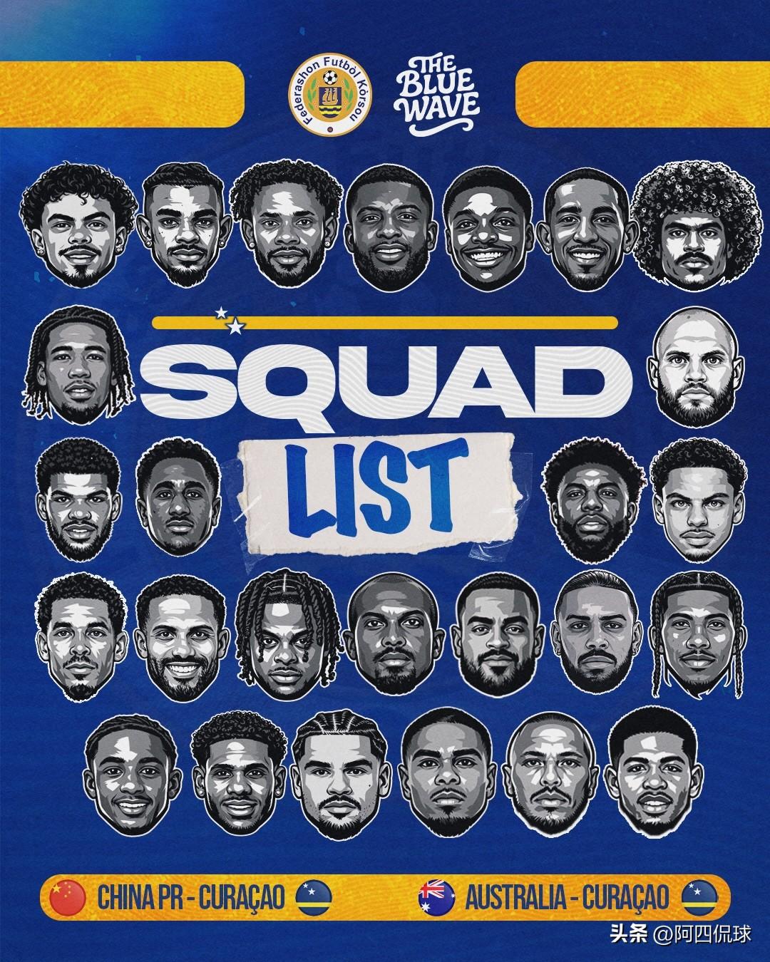 3月27日迎战中国国家队,已经打进世界杯决赛圈的库拉索国家队率先公布了比赛大名单