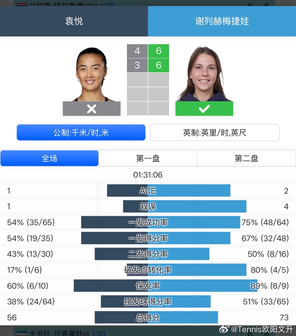 🔵WTA125奥斯汀女单首轮❌🇨🇳袁悦4-6/3-6不敌🇷🇺谢列赫梅捷