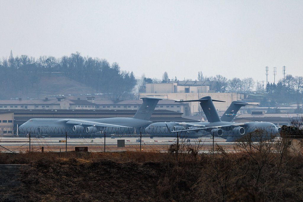 库存真的不够用了,多架美军C-17、C-5在韩国装运防空/反导拦截弹!根据当地民