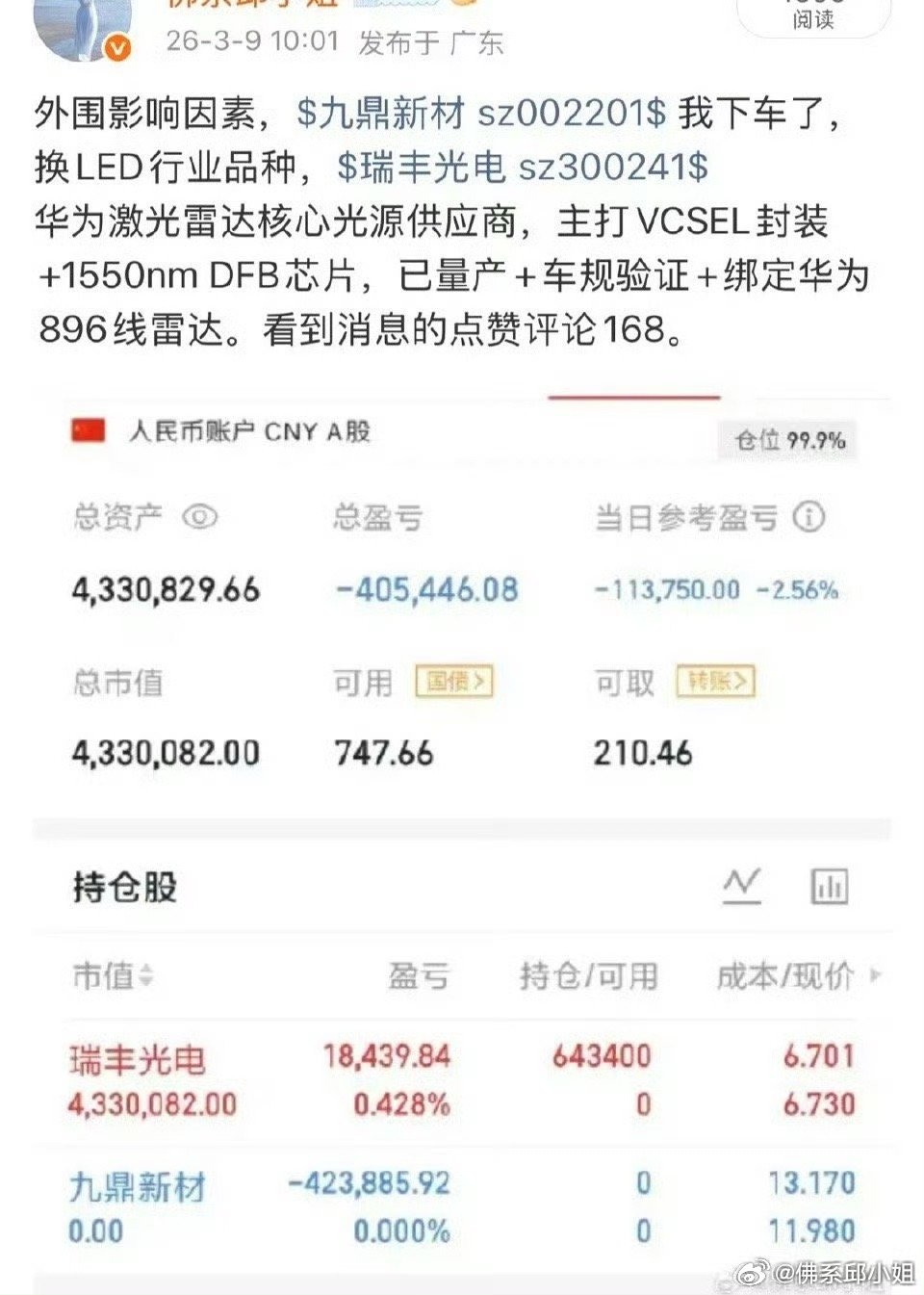 $瑞丰光电 sz300241$ 今日继续强势上攻击,别的就不多了,户头新高,目前第一部放量有望开启新的主升浪,稳健的吃肉,随时都可以走,九鼎面全部补回来了吧大家,点赞评论168,让我看一下你们的热情