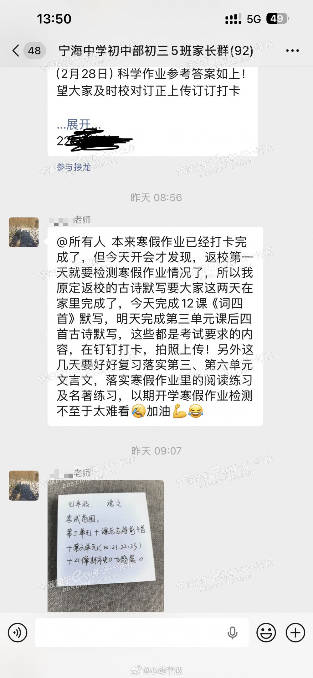 3月3日,该网友在留言中表示,宁海中学初中部初三学生定于3月4日报到开学,学校却计划在开学第一天组织考试。网友提及,教育部门已有明文规定禁止中小学开展开学考,而校方为规避相关责任,将此次考试冠以“寒假作业检测”的名义。网友对此提出质疑,希望相关部门能够严查并及时处理该问题。