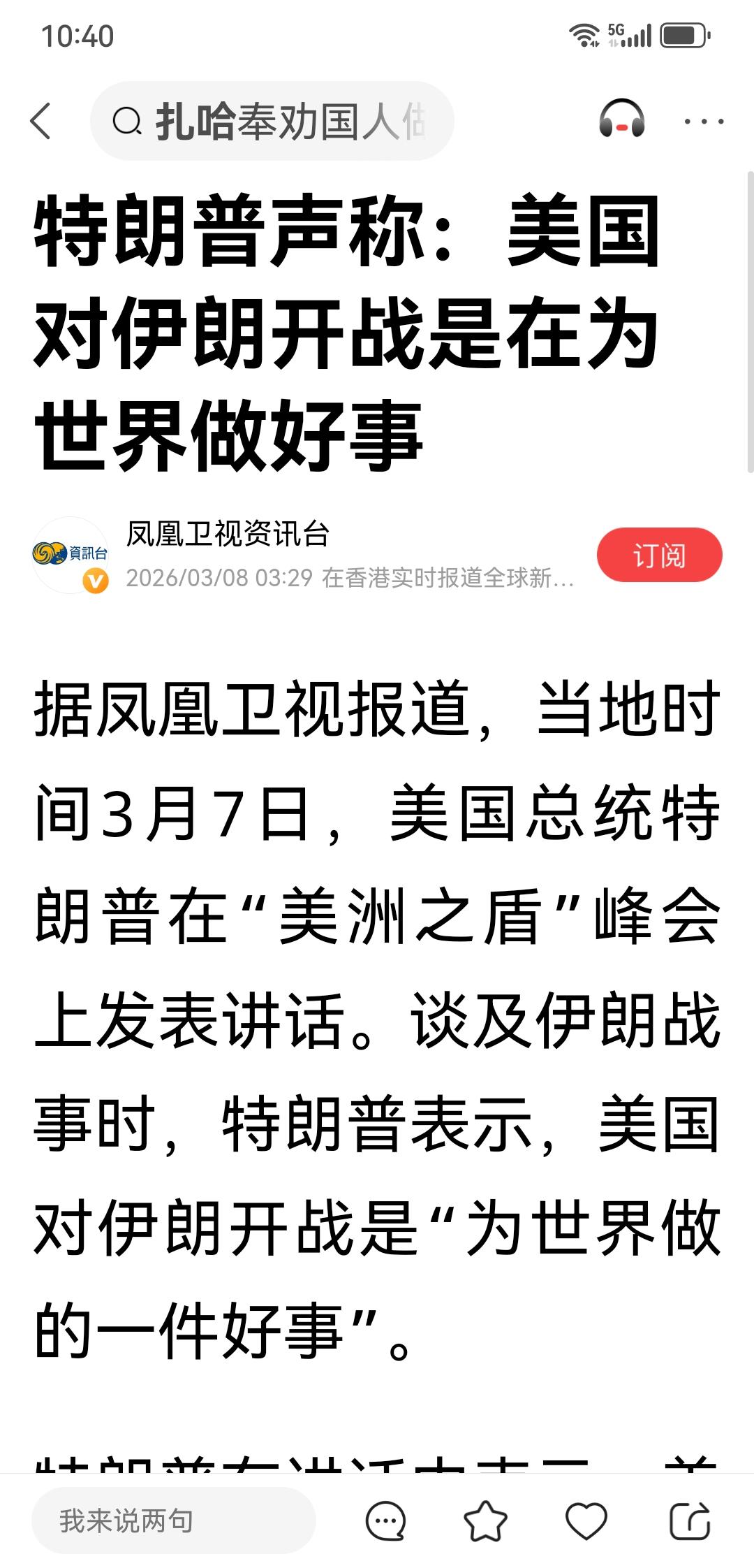 坏事与好事。近日,特朗普竟公然宣称,美国对伊朗的军事行动是“为世界做的一件好事”。此等言论,堪称颠倒黑白、强盗逻辑的典型范例。美国未宣战便肆意侵略轰炸主权国家,诱杀他国领导人,空袭学校致一百六十余名无辜学生丧生,还在国际水域击沉对方军舰且见死不救。这一系列暴行,严重践踏了《联合国宪章》与国际法准则,是对人类良知和国际秩序的公然挑衅。美方不仅毫无愧疚,还恬不知耻地自吹取得“伟大胜利”,其无耻行径,令人义愤填膺。 不过,换个地缘政治的视角来看,世界上爱好和平的国家采取多种措施支持伊朗坚决抵抗侵略,将美以势力拖入战争泥潭,使其国力消耗、深陷其中,客观上的确能削弱这一霸权体系的全球控制力,进而减轻其他地区面临的安全压力与威胁。从这一战略层面来讲,尽管对伊朗而言这是巨大的灾难与牺牲,但伊朗的抗争客观上为世界格局多极化和和平力量的重塑创造了条件,可谓“坏事变好事”。伊朗人民所遭受的苦难,也在世界和平的历史进程中,留下了沉重而悲壮的印记。