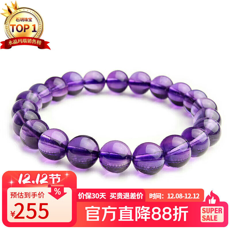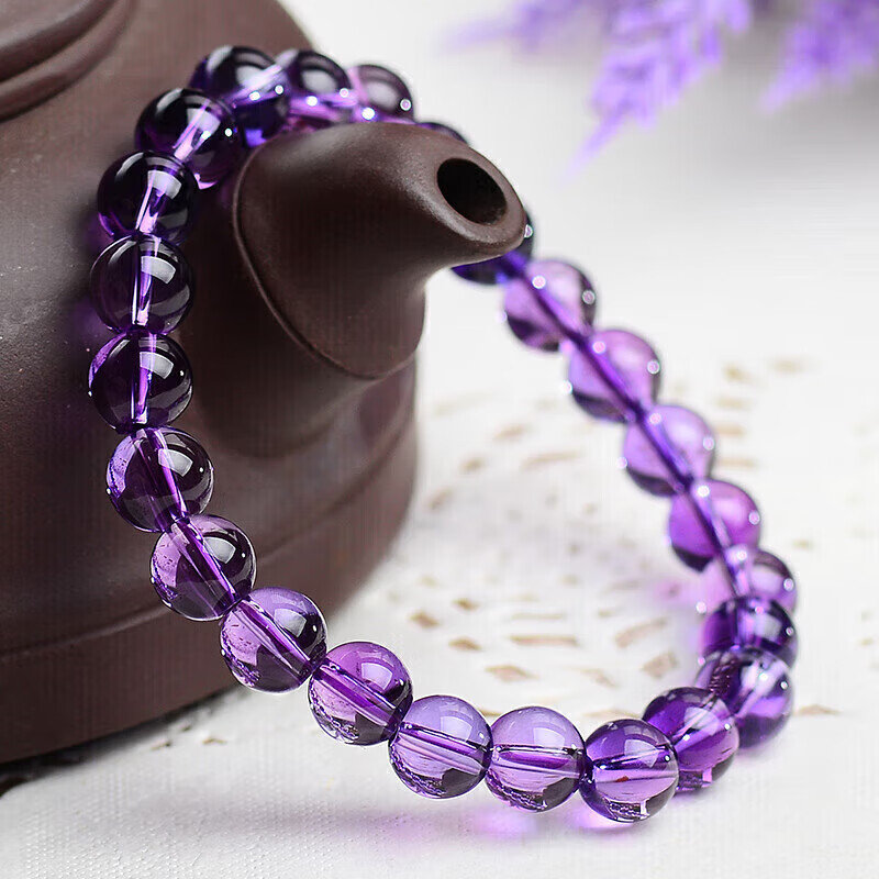 石玥珠宝7-8mm紫水晶手链转运珠手串男女士款 水晶玛瑙