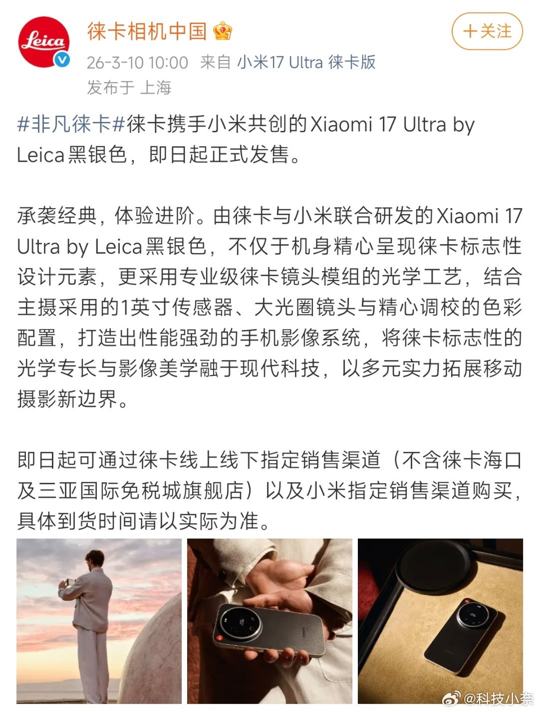 小米17Ultra徕卡版黑银色开售 小米17 Ultra 徕卡版「黑银色」正式开售,这代我还是非常建议大家入手的,毕竟整机的这个徕卡味还是十分充足的,中框精雕滚花+镶嵌经典红标+LEICA CAMERA GERMANY铭文。 再加上这是目前第一款也是唯一一款,能在徕卡门店售卖的手机,其中的含金量相信就不必我多说了吧,价格的话也没变也就是7999起,目前首销期间还有小米手环 9 Pro + 限定手机包 + 一年碎屏险 + 365 天只换不修等专属权益,感兴趣的小伙伴们抓紧时间冲了!