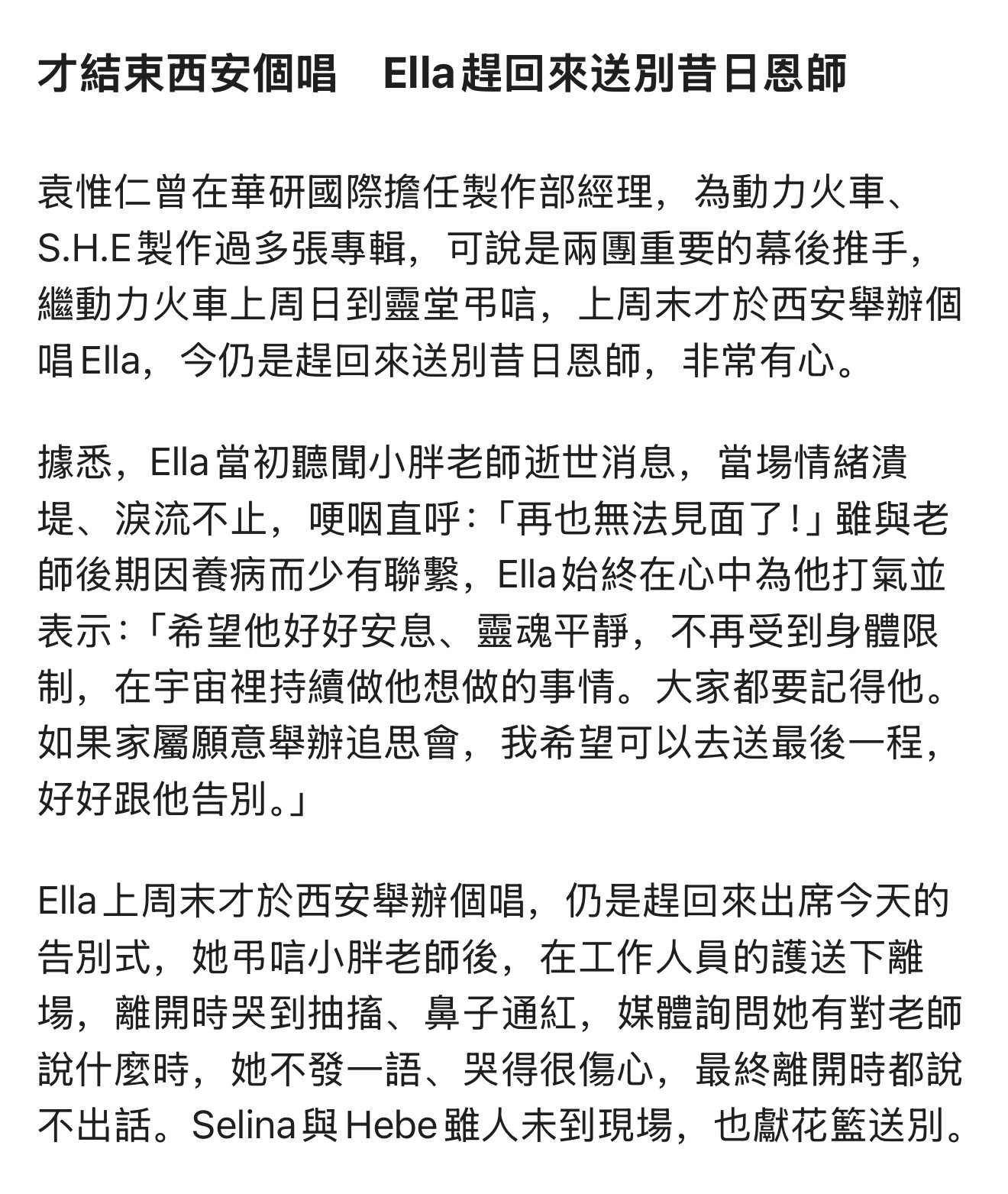 小胖老师,再见了,在天上继续与音乐相伴。袁惟仁告别式