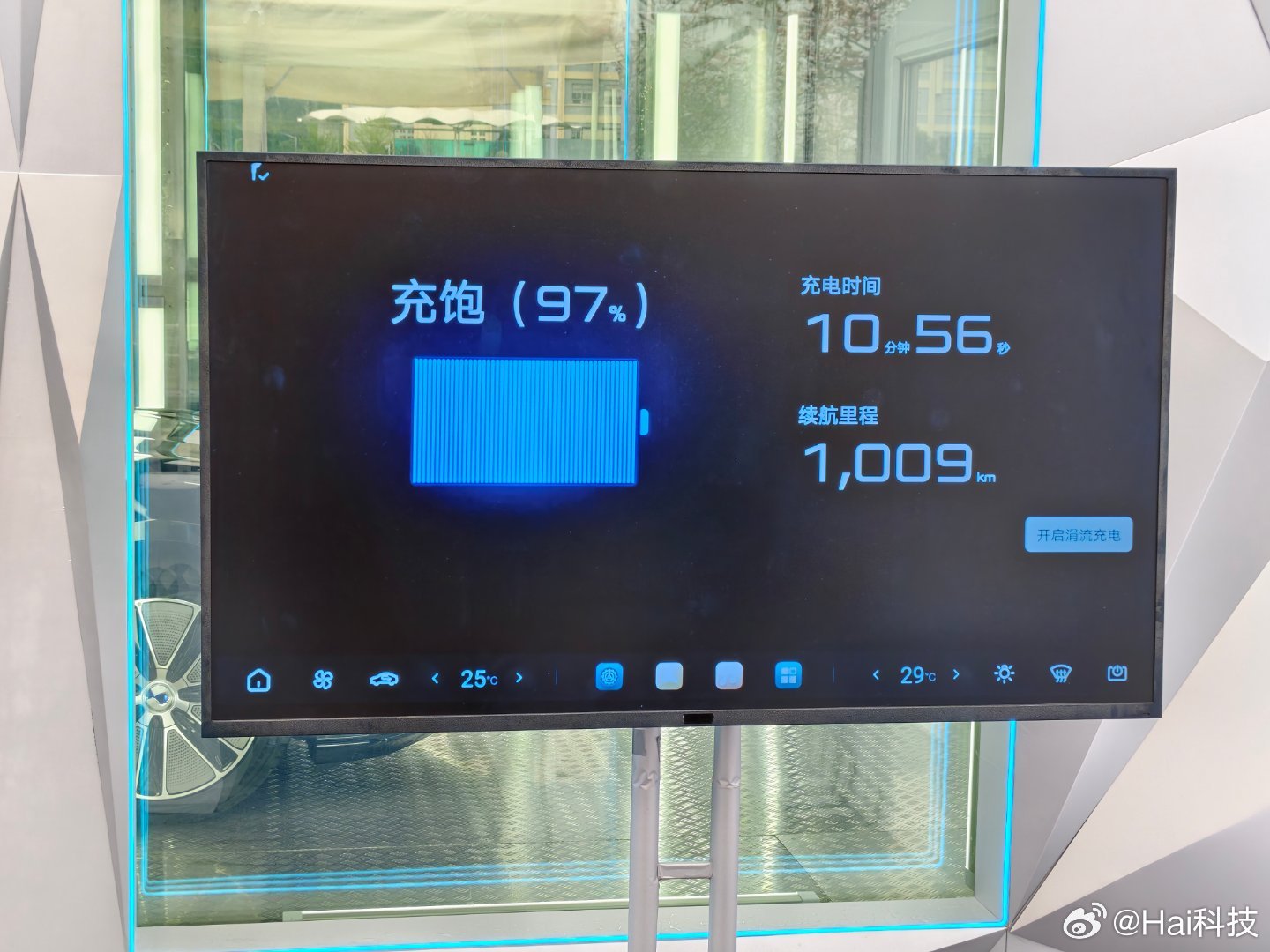 刚进了零下30°的低温舱,给我冷麻了,现在眼镜上还是厚厚的雾气,穿了条单薄的裤子,寒气入侵整个下半身,抬头一看原来不止零下30°,是零下37°!!最后充电结果我也揭晓一下吧,10分56秒,充至1009KM,前所未有,太震撼了,那些喷子直接来对比极寒环境的充电时间吧全新腾势 Z9GT