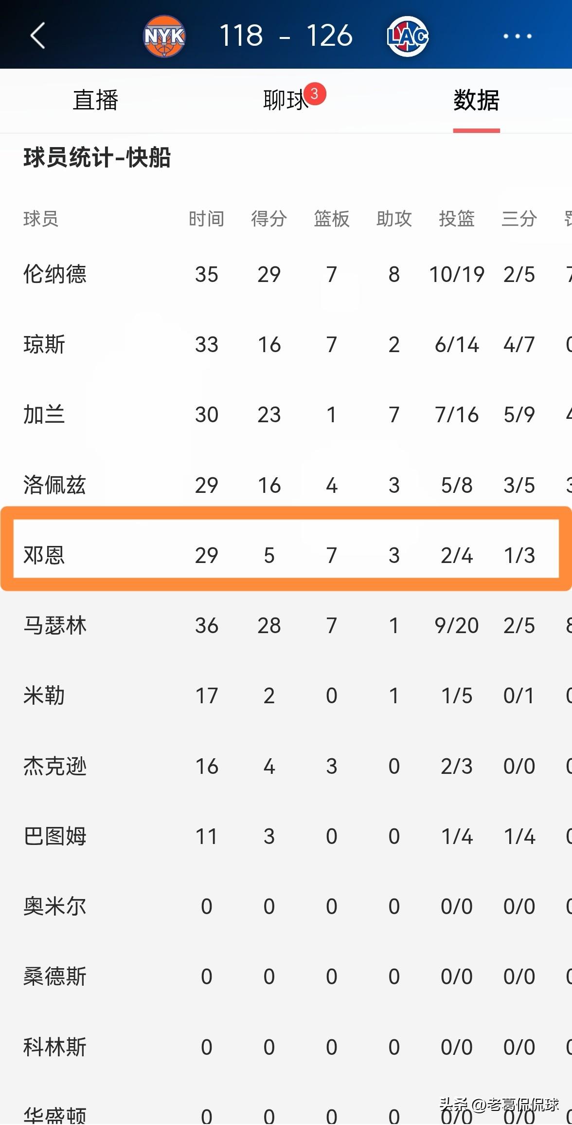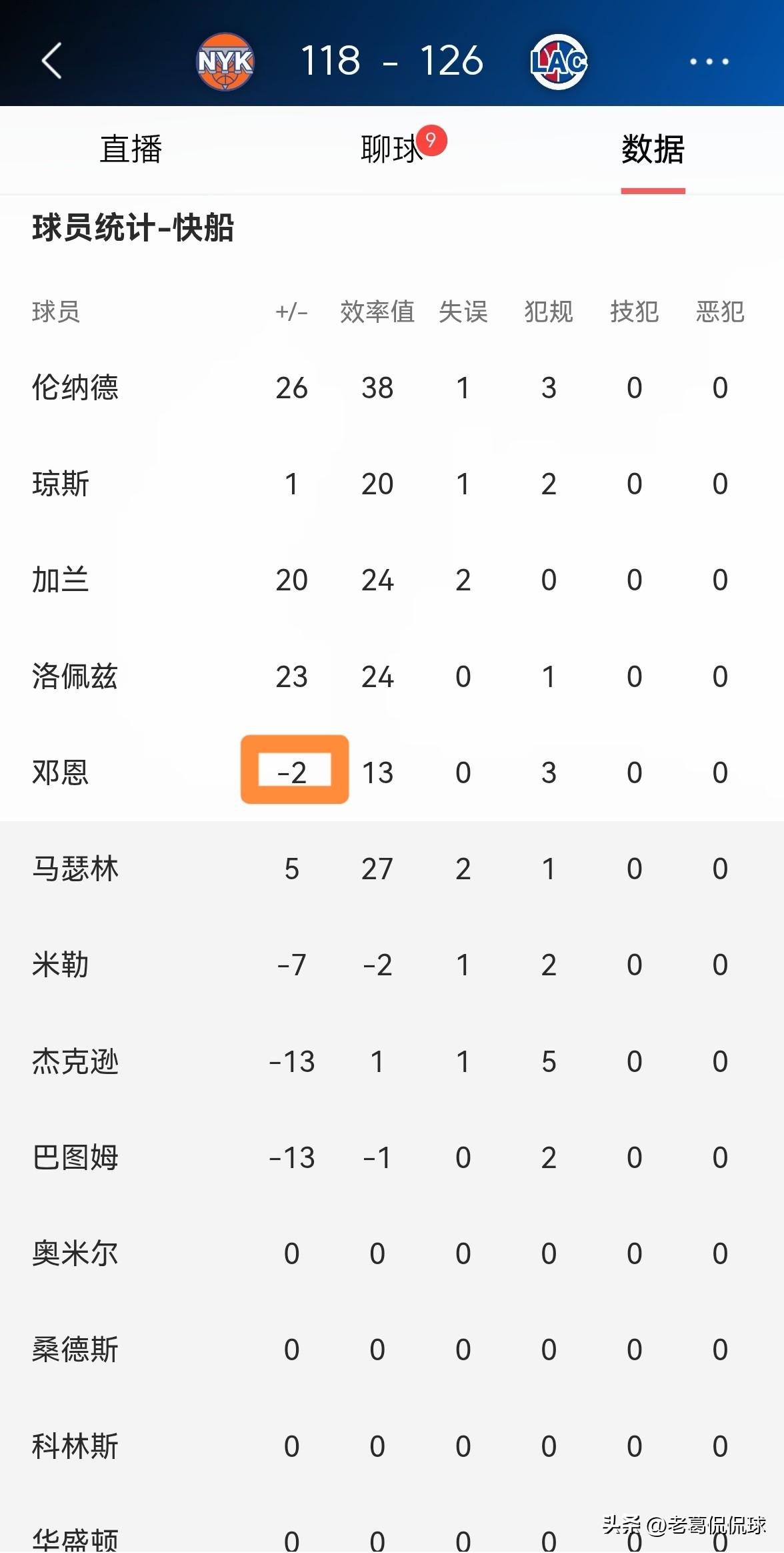 快船大将邓恩真是太尴尬了!虽然今天快船在主场以126:118击败尼克斯,但是让邓恩感到尴尬的是,他的场上正负值是球队首发球员中唯一的负值。 整场比赛下来,邓恩首发出战29分钟,投篮4中2,其中三分球3中1得到5分7篮板3助攻3抢断,还有3次犯规,他的场上正负值为-2。 我相信当邓恩在赛后看到自己的场上正负值时,他一定会感到特别的尴尬。