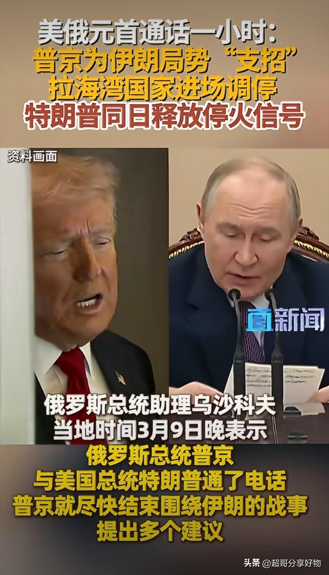 普京就中东局势提出外交斡旋建议后,特朗普随即表态对伊战事“很快停火”,这并非美国打赢后的宣告,而是战场陷入泥潭、国内压力陡增下的战略止损,俄罗斯则以调停者姿态,占据了地缘博弈的主动位。 美军伤亡持续攀升、油价剧烈震荡、国内通胀与反战声音四起,原本设想的“低成本速胜”彻底落空。伊朗在新领袖统领下军政团结,扩大猎杀范围、持续精准反击,让美以进退维谷。特朗普此前“战争基本结束”的表态,本就是为抽身铺垫,普京的外交建议恰好送上体面台阶,让美方得以顺势转向谈判。 普京推动海湾国家、伊朗等多方对话的方案,既契合地区止战需求,也提升了俄罗斯在中东的话语权。美俄元首通话达成的共识,为中东战火降温打开关键窗口,但停火不代表和平,双方核心分歧并未消解。 特朗普口中的“很快停火”,是权衡利弊后的妥协。这场博弈证明,军事霸权解决不了根本矛盾,唯有尊重主权、平等对话,才能真正实现地区稳定。