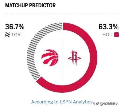ESPN真是太看得起火箭了!明天火箭将会坐镇主场迎战猛龙,今天ESPN对于这场比赛进行了一番预测,结果真是让人大吃一惊,ESPN竟然预测火箭的胜率高达63.3%。 以我的拙见来看,ESPN真是太看得起火箭了,作为当今联盟著名的伪强队,虽然火箭的纸面实力要强于猛龙,但是火箭赢球的概率绝对达不到63.3%。再加上火箭惨败于马刺,球队的士气依然非常低落,因此我觉得猛龙赢球的希望更大。