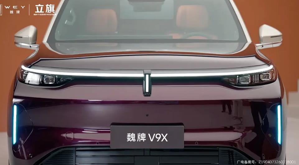 近日,魏牌官方宣布旗下大型SUV魏牌V9X正式亮相。作为归元S平台首款车型,它搭载2.0T插混系统,工信部纯电续航里程有240km和363km两种版本。外观上,新车采用全新设计,封闭式前格栅搭配星环式贯穿灯带及相连大灯组,拉宽横向视角,灯带支持流水迎宾效果,配合发光品牌LOGO,辨识度高;车头顶部配备激光雷达,预计搭载高阶驾驶辅助系统;前包围中央为主动闭合式进气格栅,下包围两侧集成智驾小蓝灯与转向灯。车身侧面,双腰线设计拉长视觉效果,轮拱上方凸起线条增添运动气息,双拼色车身、传统车门把手及密辐式轮圈提升精致感。尾部采用贯穿式尾灯组,两侧椭圆形设计并集成智驾小蓝灯,辨识度强。内饰方面,采用新能源主流设计风格,窄条式全液晶仪表搭配一体式连屏(大尺寸悬浮式中控屏+同尺寸副驾娱乐屏),科技感十足;贯穿式空调出风口配合环抱式座舱造型,提升视觉层次感。后排采用2+2+2的6座布局,第二排座椅提供躺椅模式,搭配可翻折娱乐屏及边缘氛围灯,提升舒适度与精致感。配置上,前排及二排扶手处均提供手机无线充电功能。尺寸方面,新车长宽高为5299/2025/1825mm,轴距3150mm。动力上,搭载2.0T发动机组成的插混系统,发动机最大功率175千瓦,最高时速210km/h,满电与馈电状态下0-100km/h加速时间分别为4.4秒和4.7秒;新车或将基于800V混联架构,搭载混动6C电池,实现纯电续航超400km,充电5分钟续航200km(此次申报纯电续航为240km和363km)。【来自懂车帝车友圈】