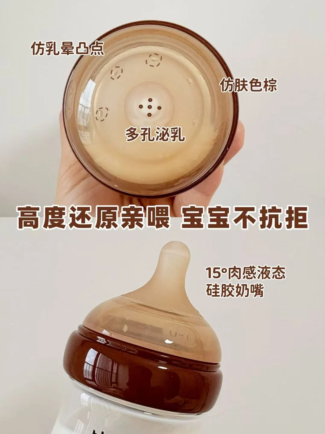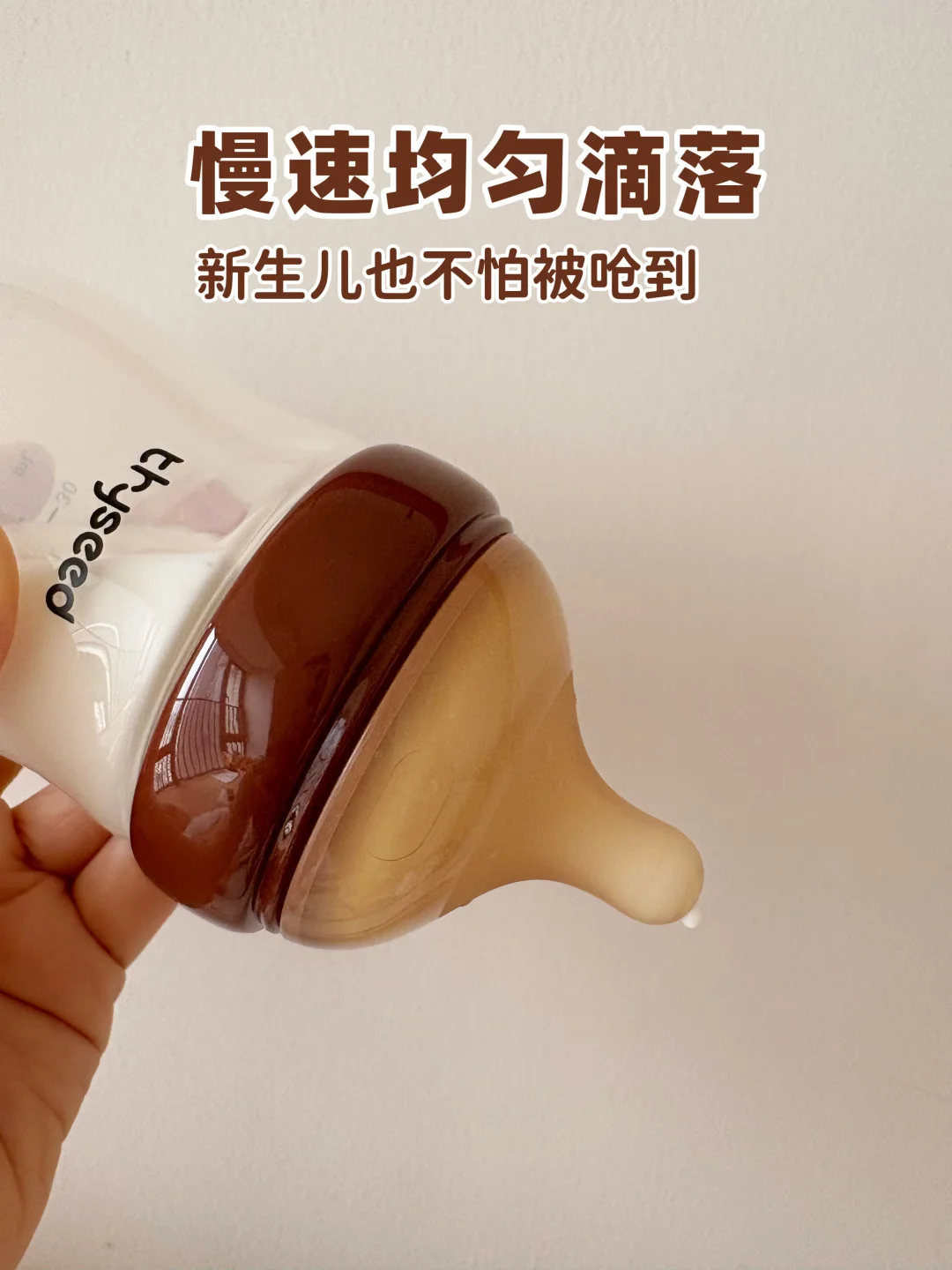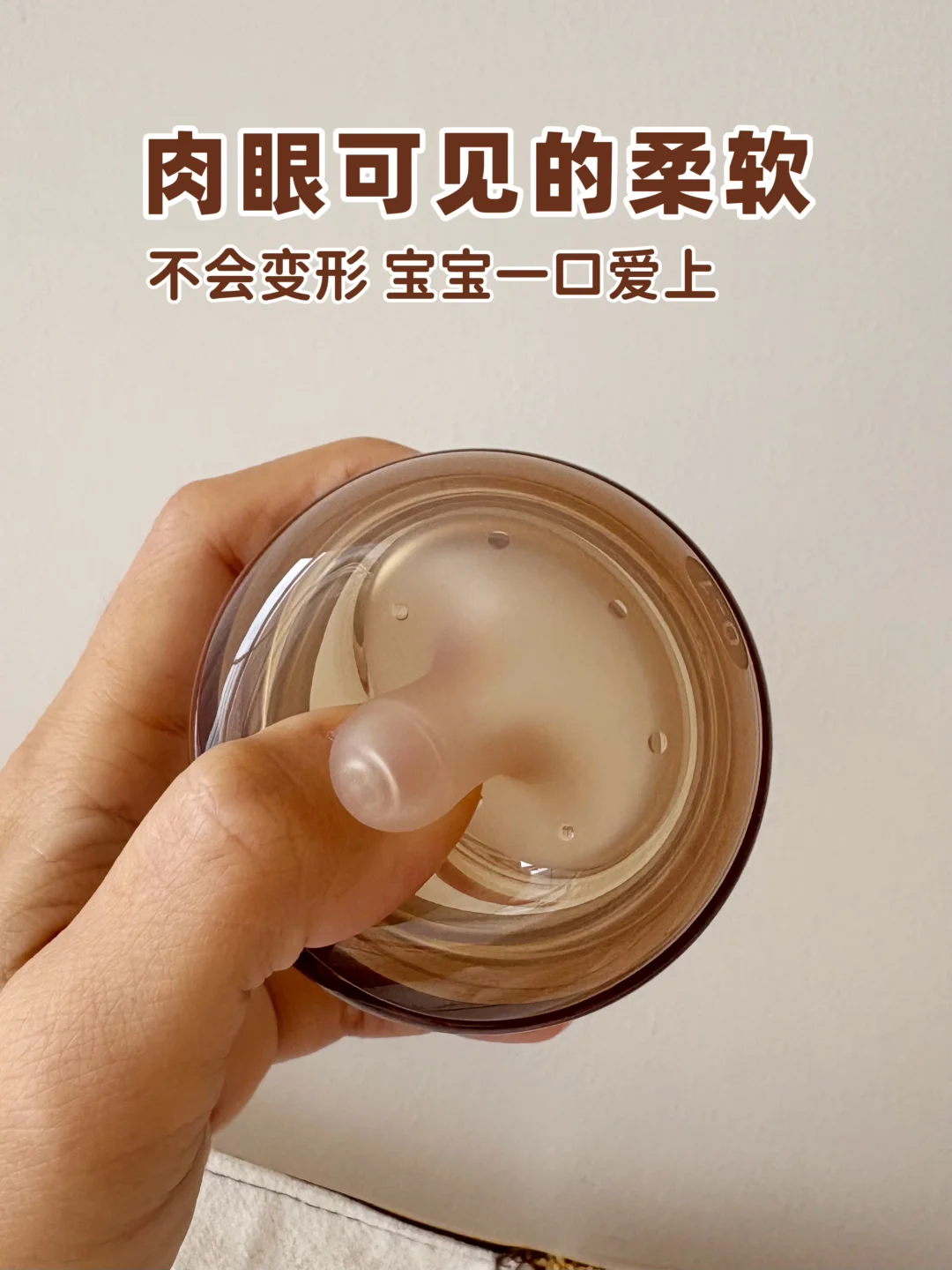 奶嘴做得软乎乎的,仿母乳造型加上仿乳晕凸点,宝宝接受度特别高,👶🏻宝宝一口就爱上,亲喂瓶喂切换宝宝完全没感觉。S号奶嘴流速非常缓慢匀速,也不会呛奶。
