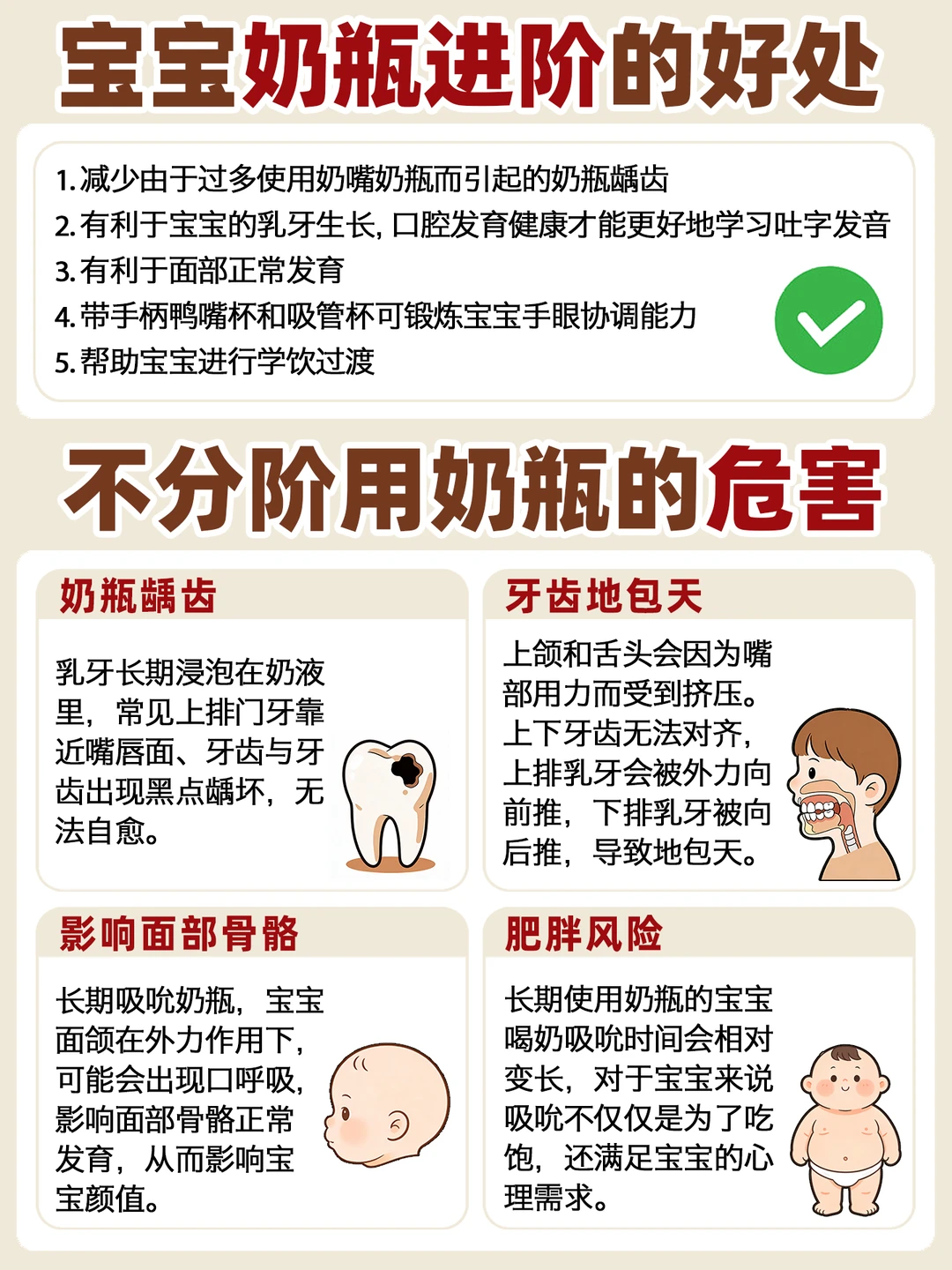 ⚠️长期不分阶段使用奶瓶,危害真的不小: