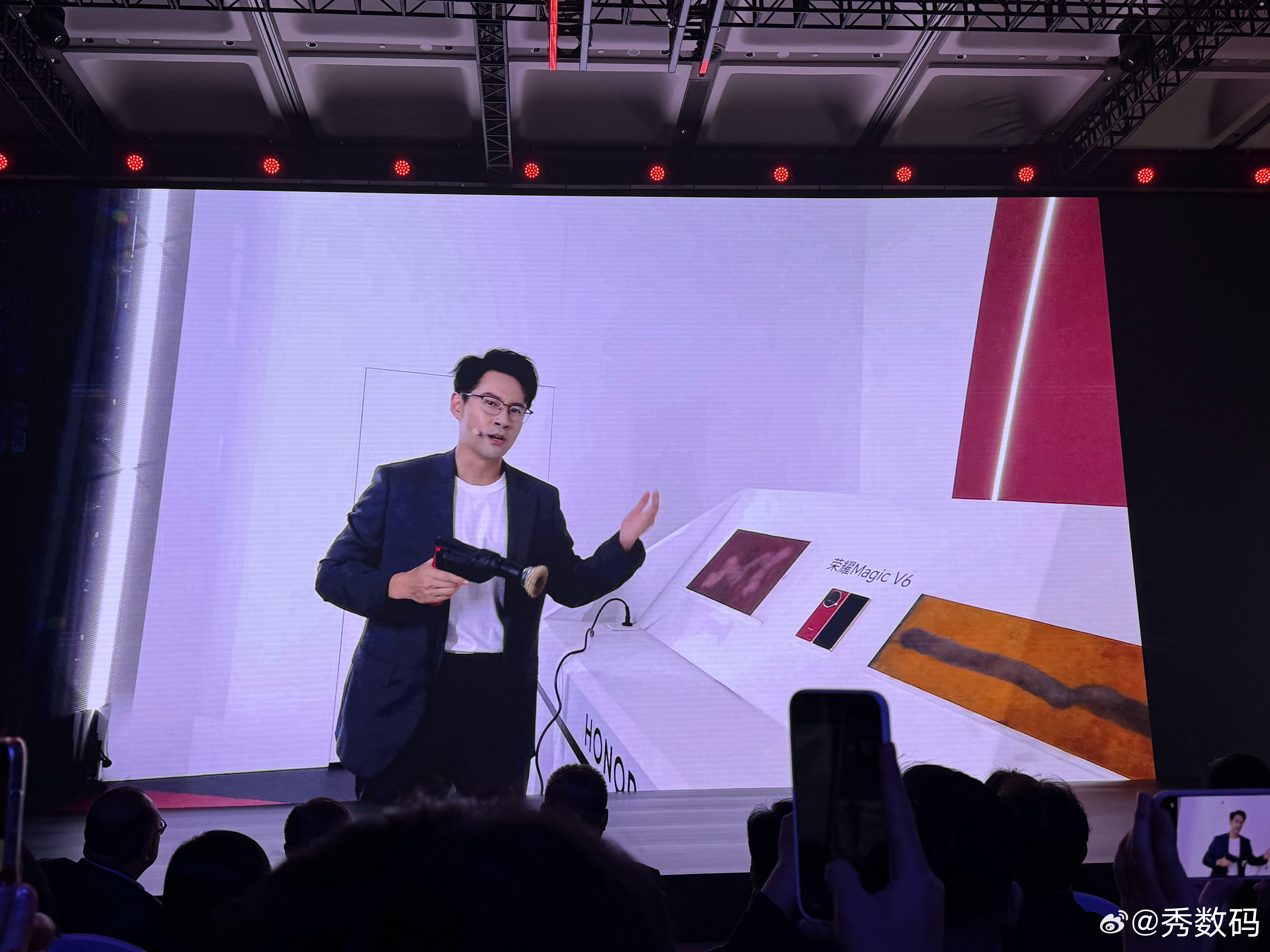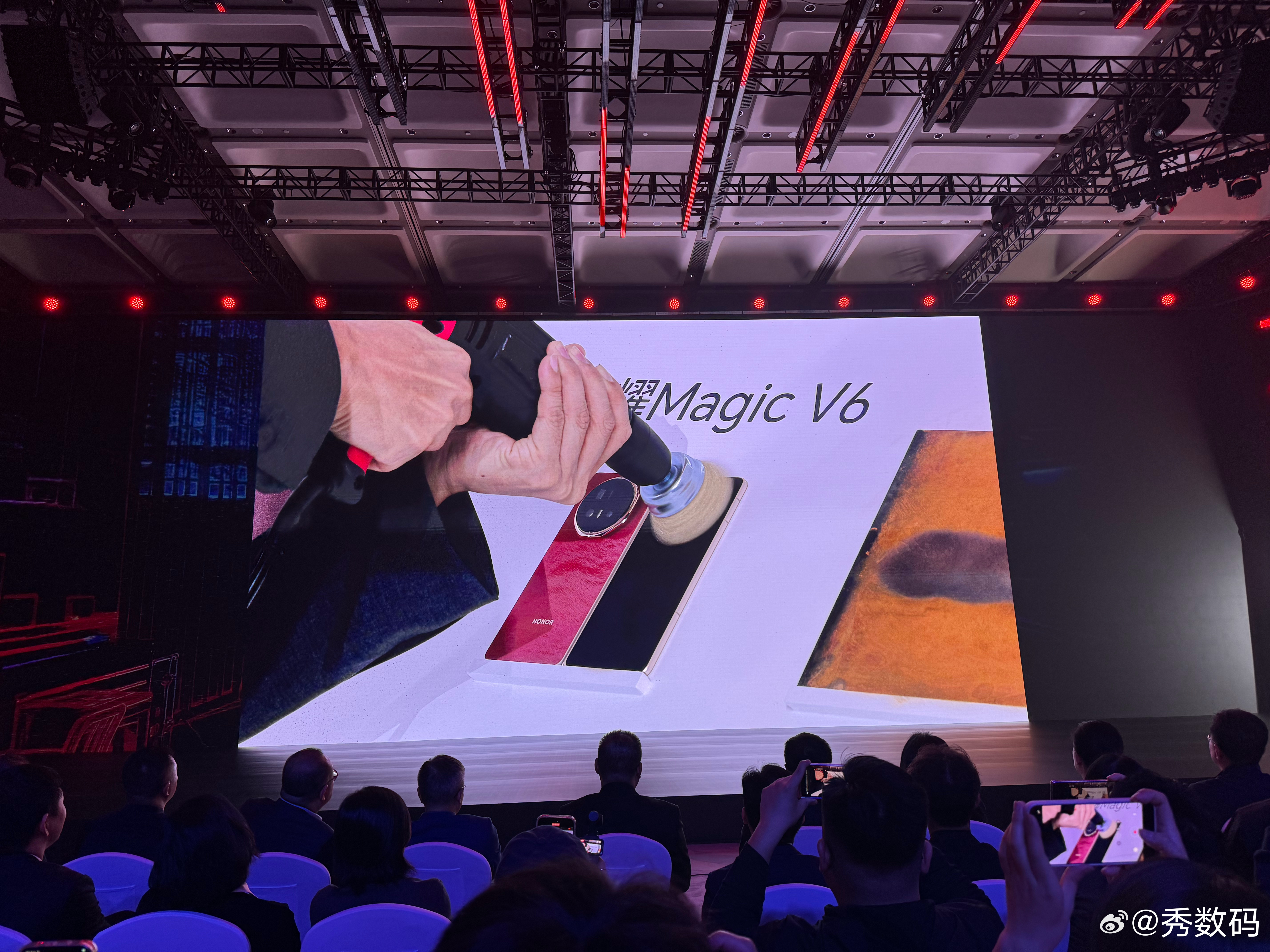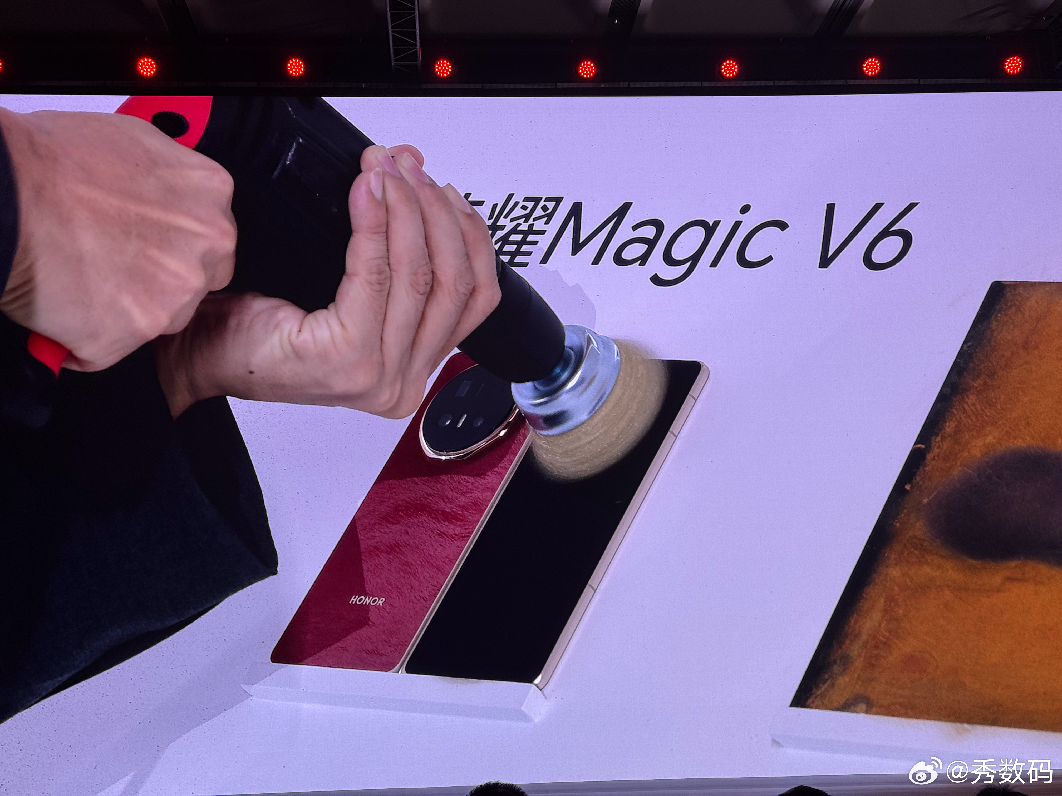 荣耀Magic V6的黑钻屏确实有两把刷子,现场直接用角磨机折磨屏幕,屏幕完好无