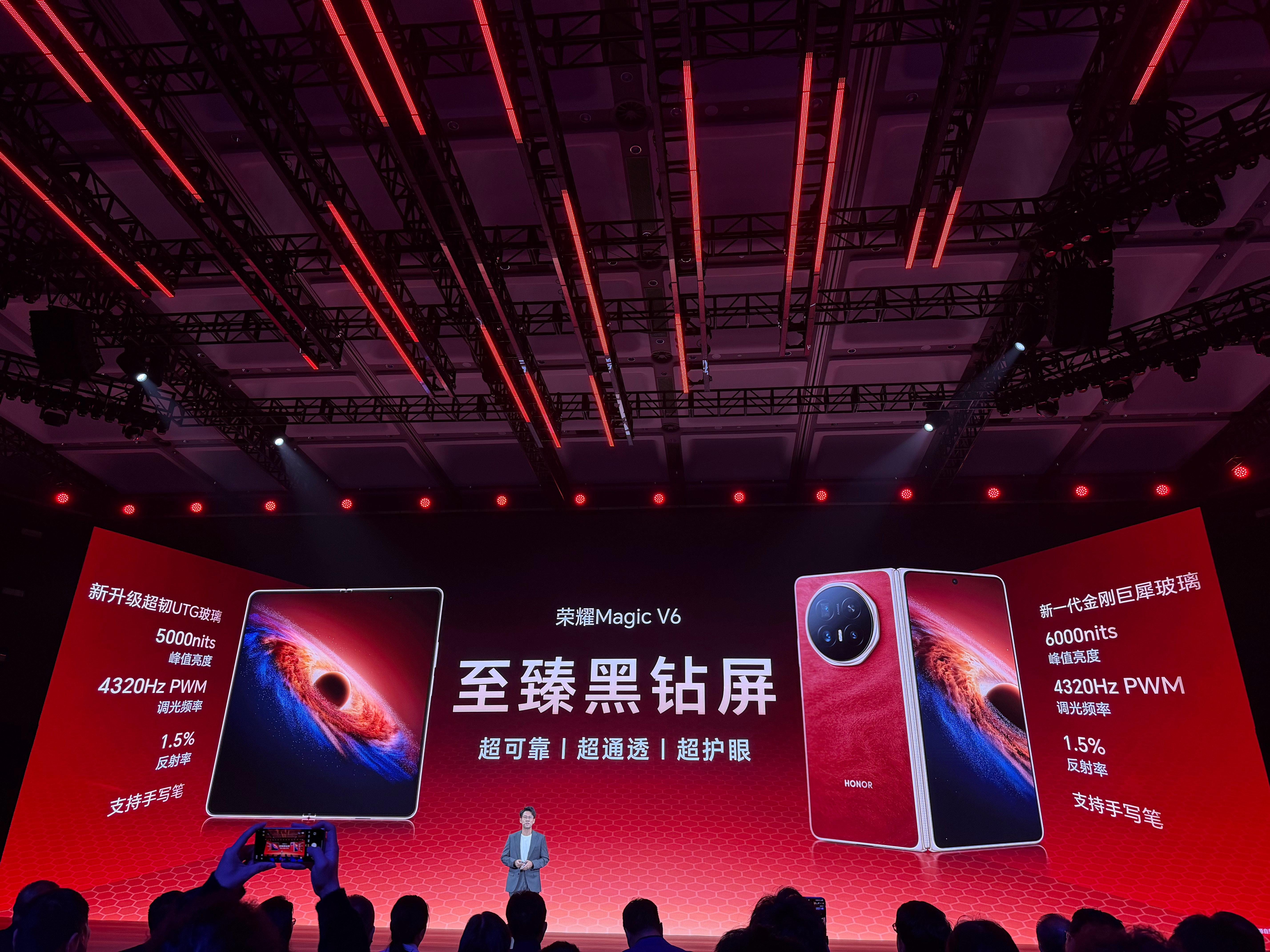 荣耀Magic V6这黑钻屏真不是吹的,发布会现场暴力测试看得我膝盖都软了,电钻狂转、钢拳拍、谢霆锋被吊着甩,结果人家依旧完好无损!荣耀Magic V6首发评测荣耀Magic V6荣耀Magic V6折叠大满贯