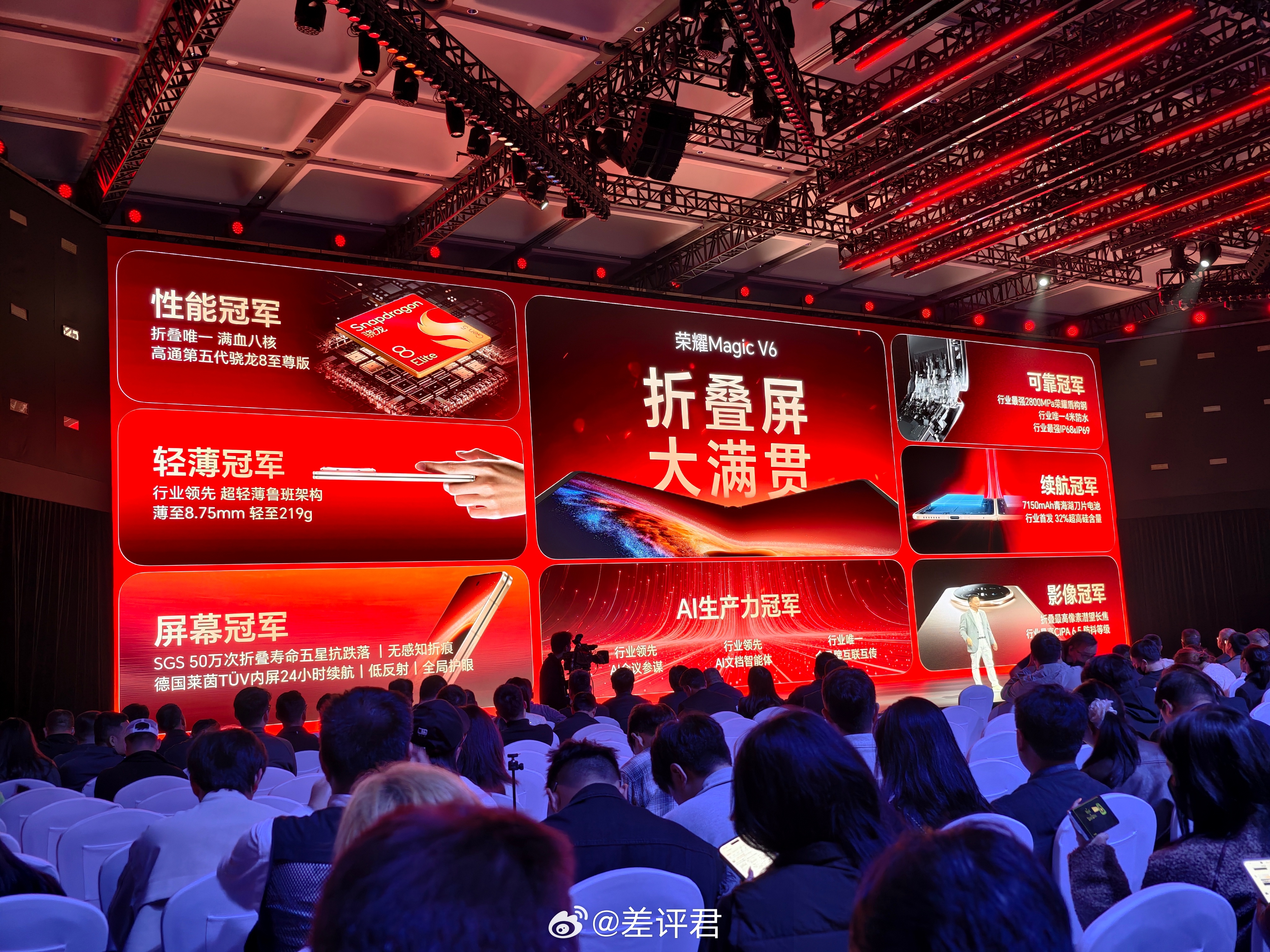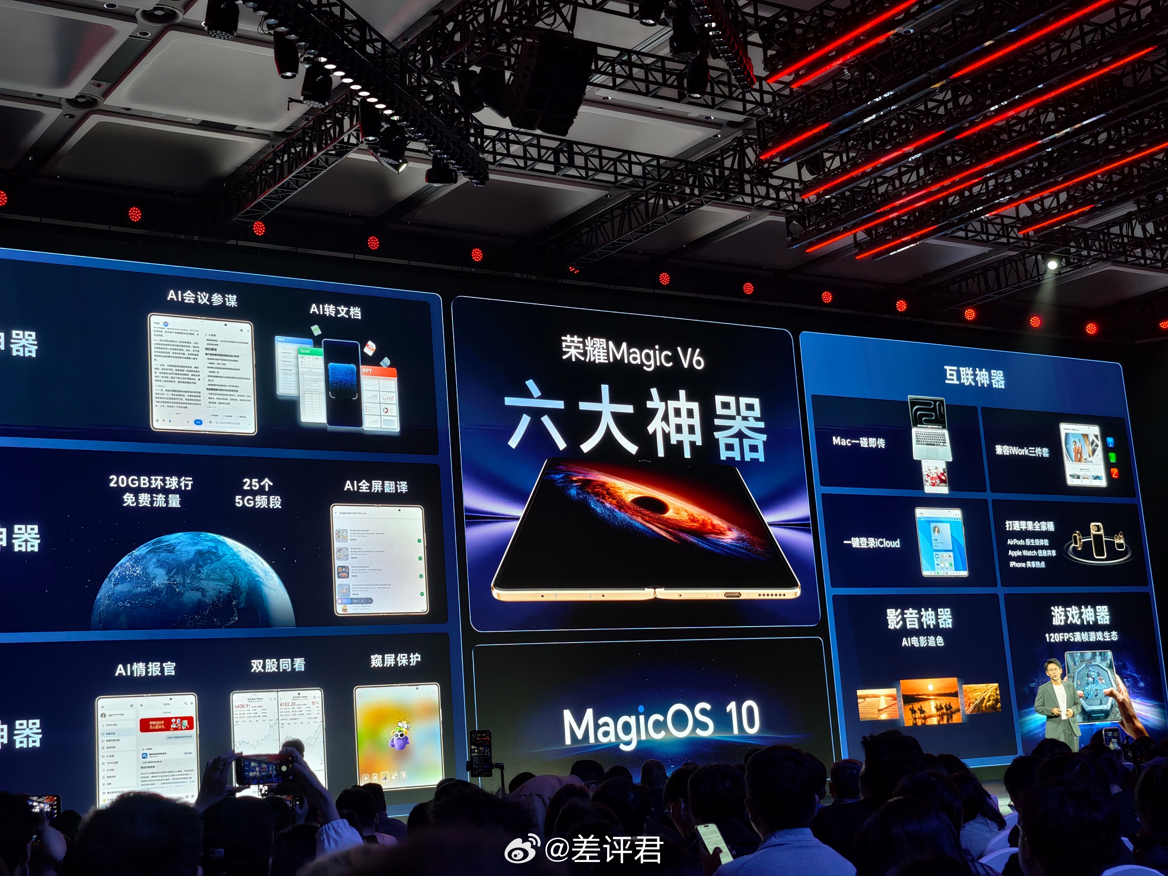#差评说数码# 荣耀 Magic V6 来了,主打一个坚固耐用,用上了耐刮而且更黑更通透的黑钻屏,再加上折叠屏 IP68/IP69 防尘防水,荣耀盾构钢和改善的折痕。能看出来这次荣耀就是想一个人们对折叠屏不耐用的印象,你尽管用就完事儿了。。。