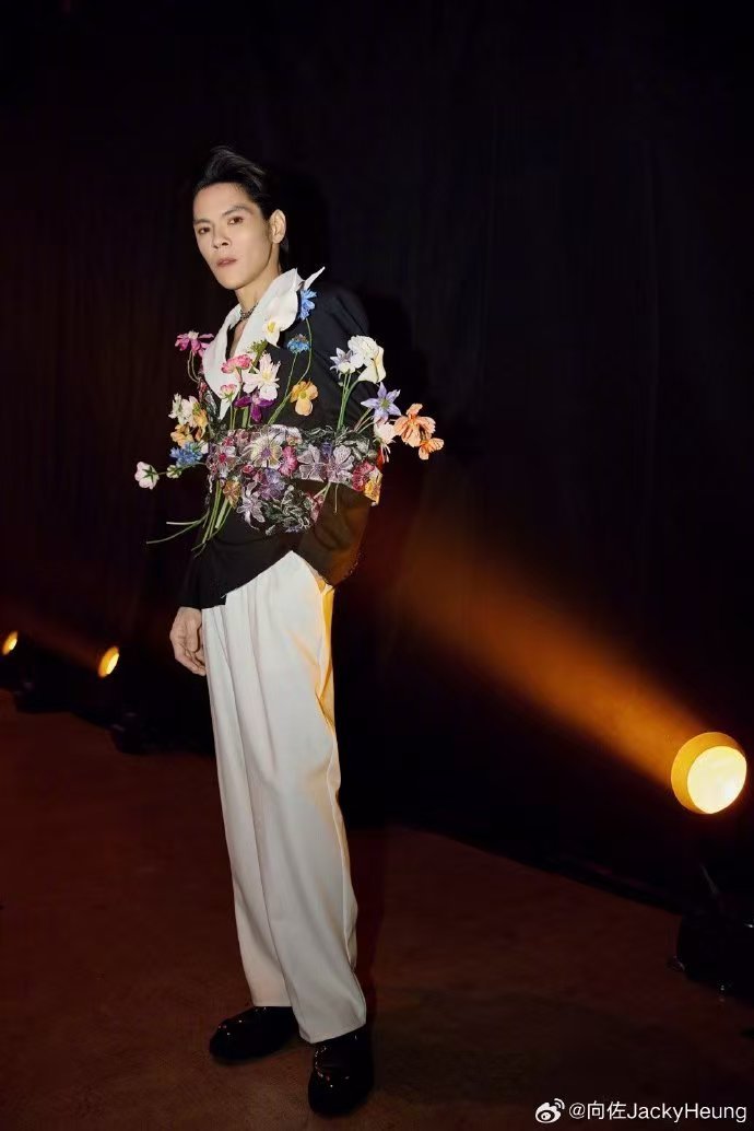 向佐腰间插了一圈鲜花 哇哦!向佐腰间插满鲜花,精致绣花做底,浪漫又酷帅,这男士穿搭新思路,让时尚变得如此有趣!