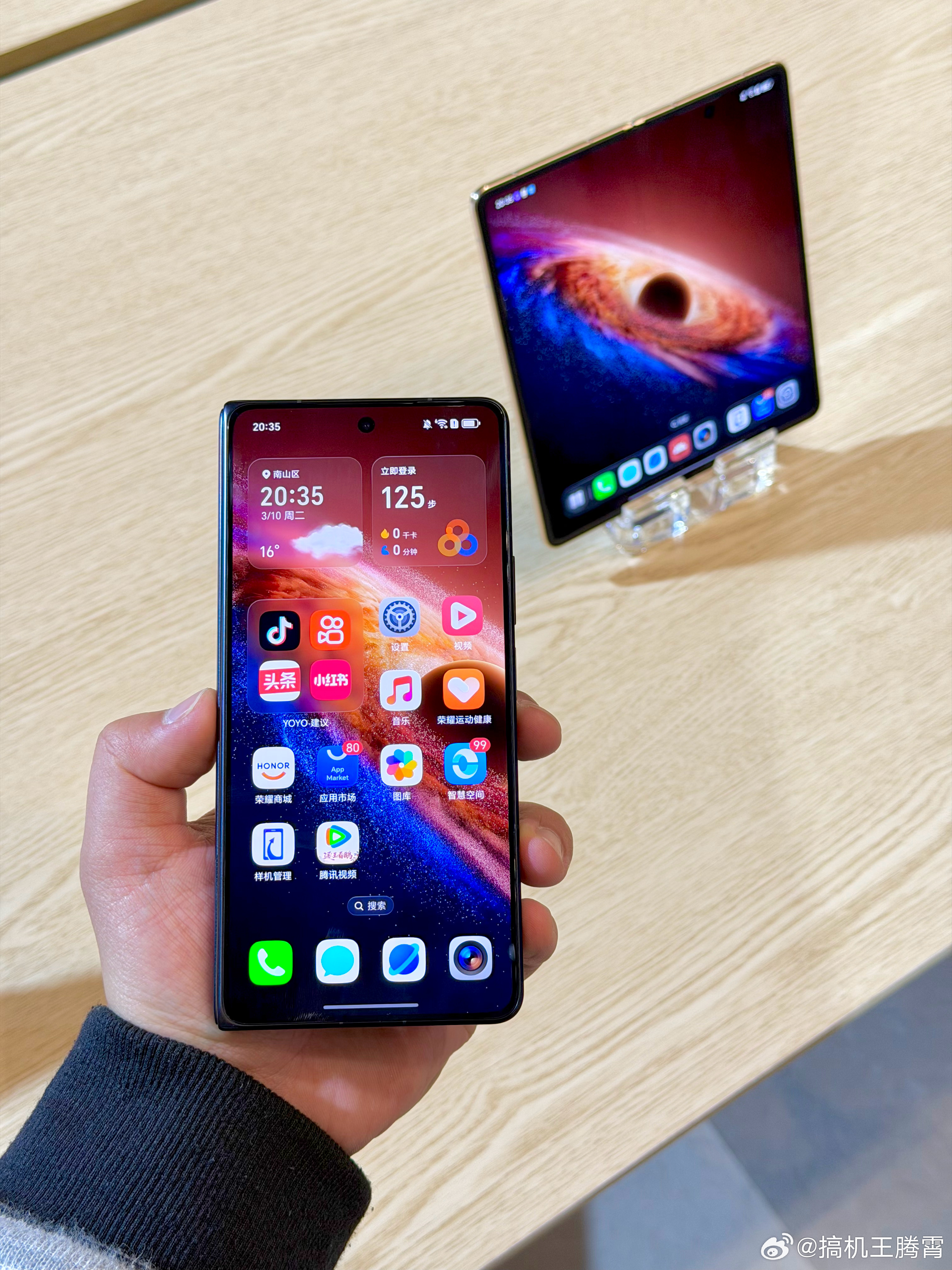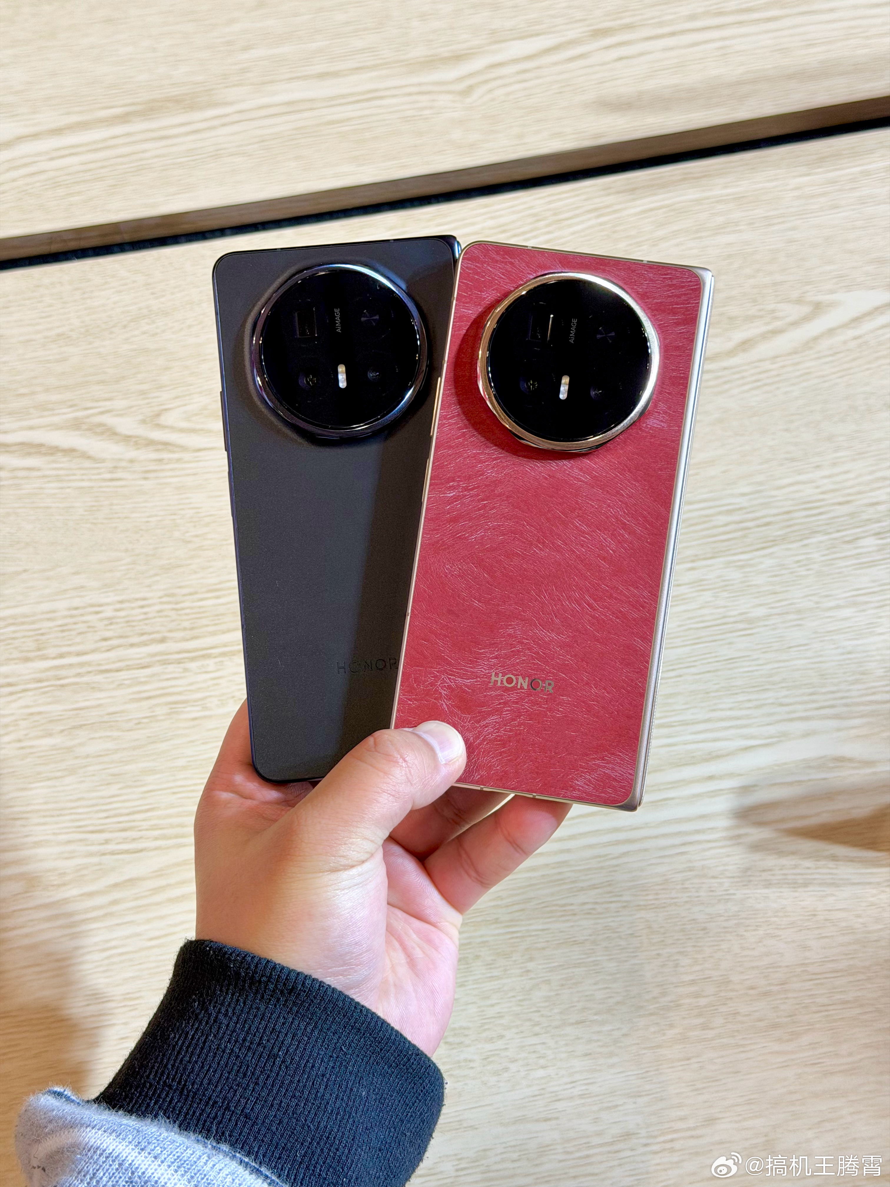 拍了组荣耀Magic V6全系配色真机给大家感受下,简单说两句,这个红色真心不错,摸起来绒绒的很舒服,外观也够特别。机身轻薄没啥说的,外屏比例更协调,即便不展开用也蛮好,内屏折痕非常无感,我自认为比较抗打的一款大折,你们觉得咋样?