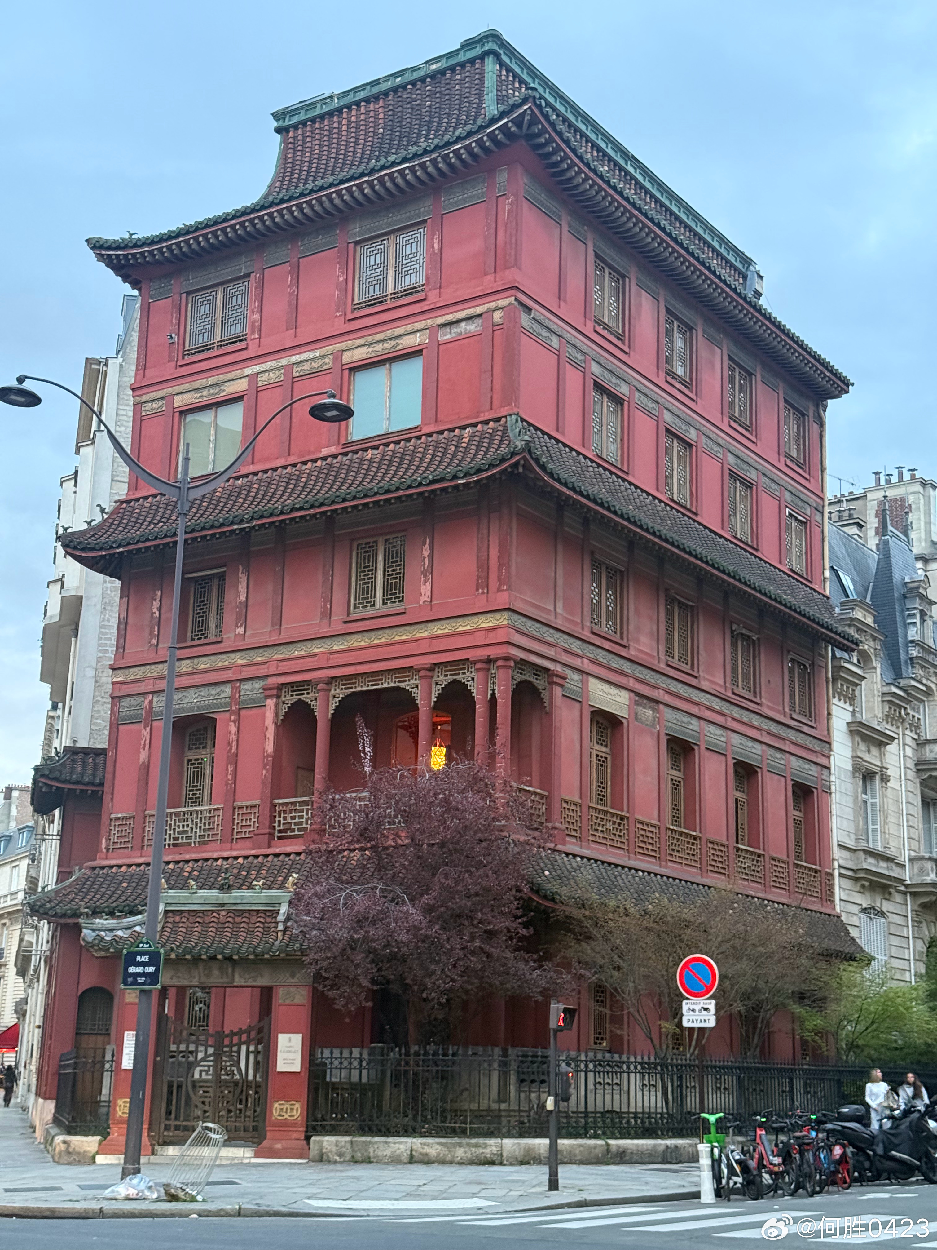 在蒙梭公园附近发现了一幢中式风格的建筑,和旁边的建筑显得格格不入,AI给出了不同