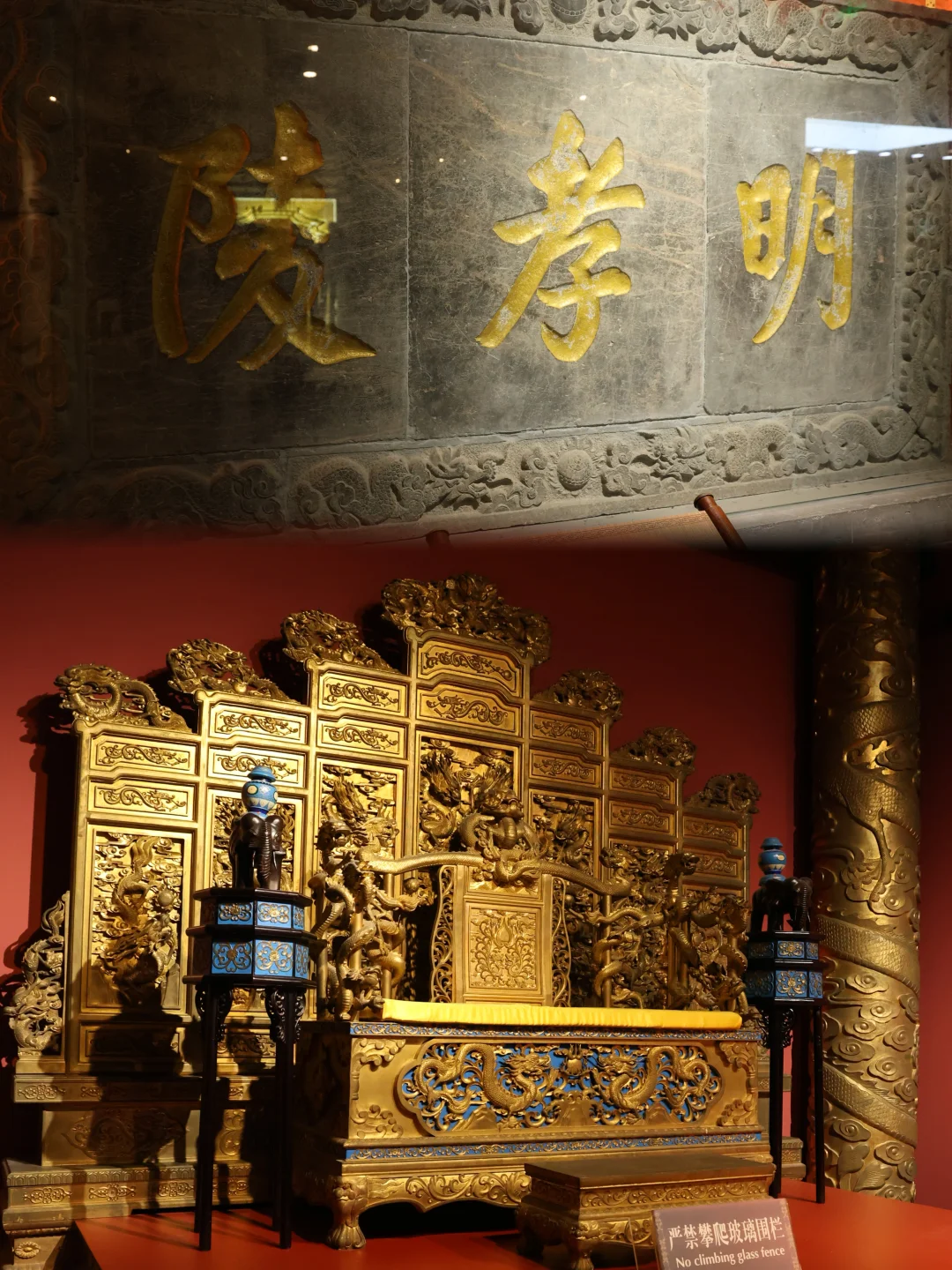 馆内复原了明代龙椅宝座,朱红宫墙搭配鎏金雕龙,瞬间穿越回大明王朝!