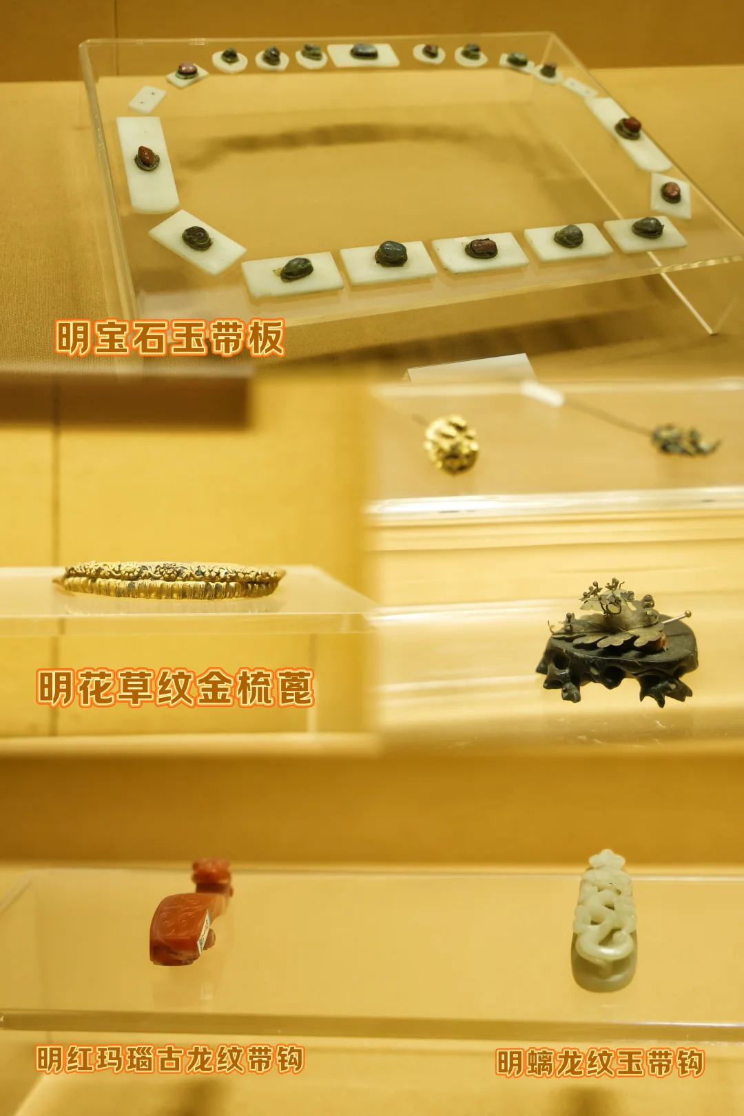 • 明宝石玉带板:白玉镶嵌各色宝石,是明代官员身份的象征。