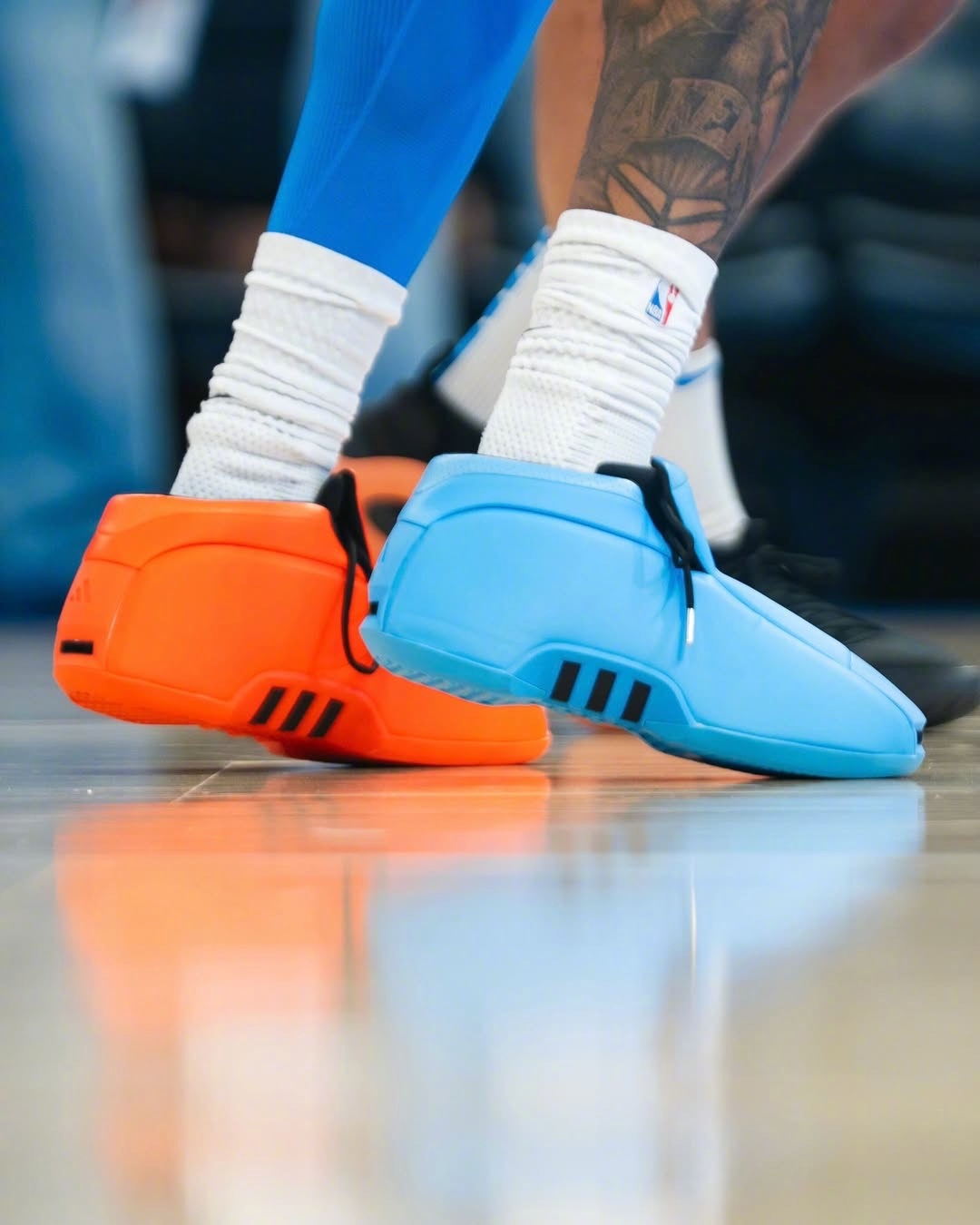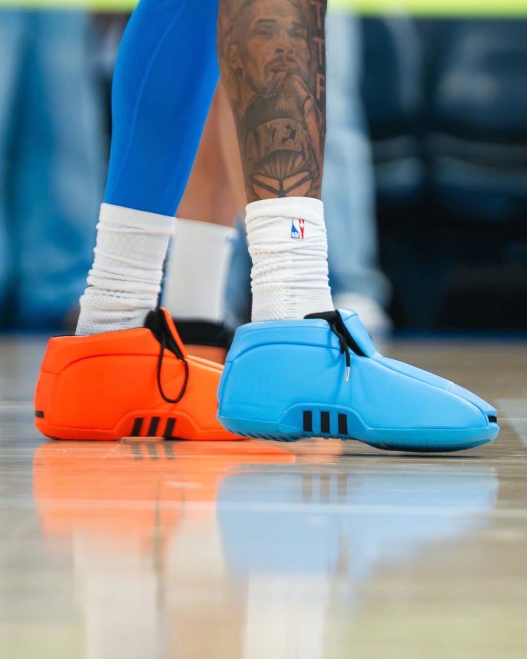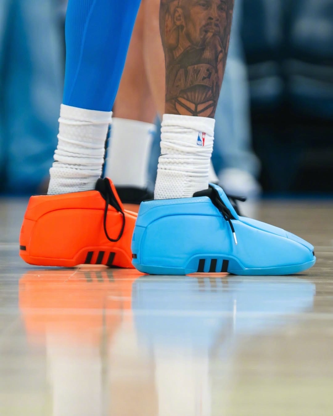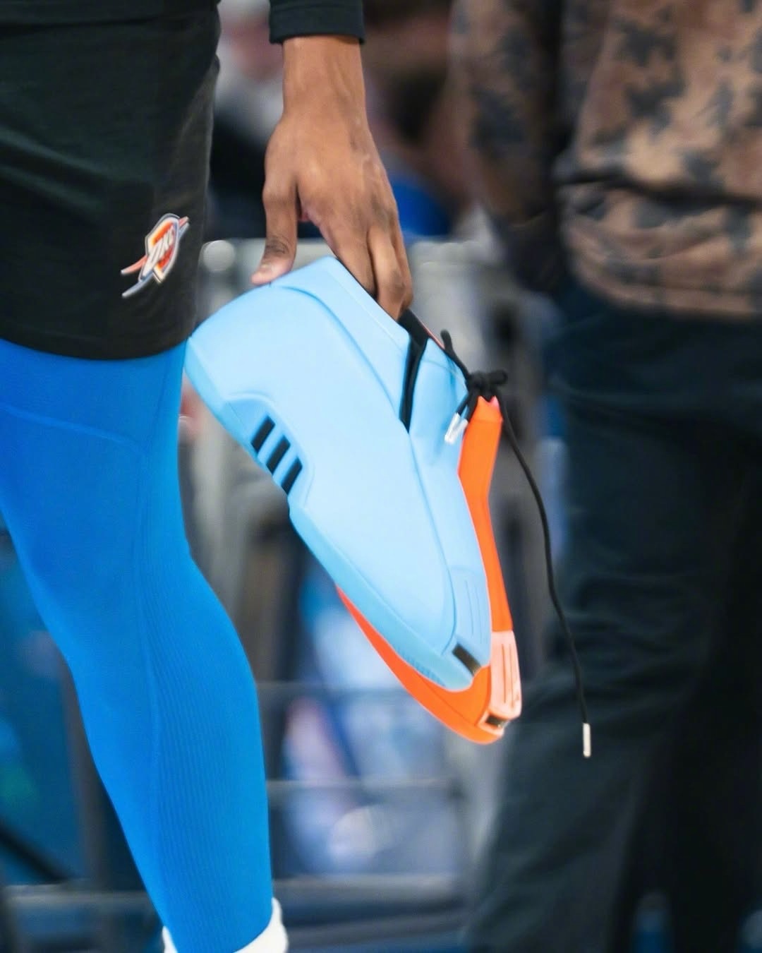 杰伦·威廉姆斯在对阵掘金队的赛前热身中首次亮相了新款鸳鸯配色的“OKC Thunder” adidas Crazy 2 PE