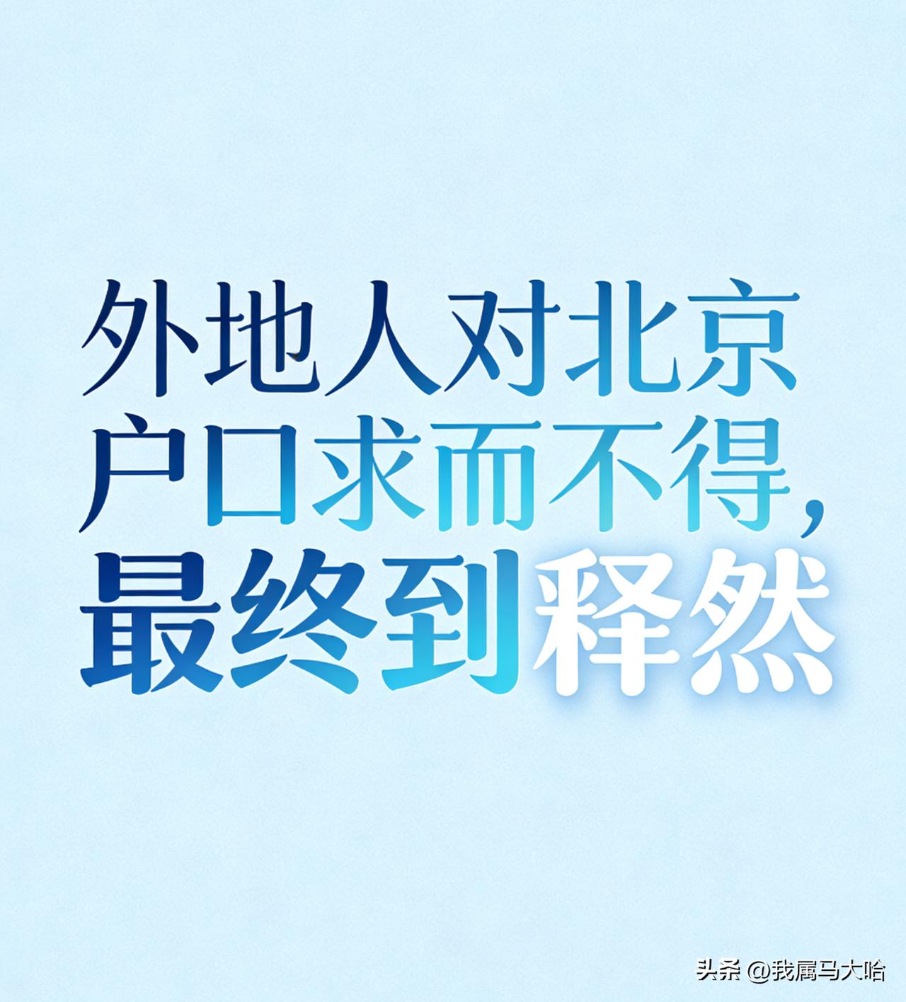 北漂十几年,我终于想明白北京户口其实也不算个啥,有车有房有票子才是硬道理…… 前几天,看到了一个文章写关于北漂子女教育的新政策,说是可能要解决外地孩子在北京上学的问题。 说实话,我激动了一下,但转念一想,又平静了下来。因为我知道这是不可能的。 而且我的孩子已经从北京转走回老家上学了。 回想这么多年来我对北京户口的执念,说到底就是为了自己孩子能有个在北京上学、参加高考的机会。户口不过是一张纸,但这张纸背后,是孩子能不能留在自己身边的差别。 现在孩子虽然回老家了,但我反而想开了。 没有北京户口咋了?孩子回老家一样能上学,我周末也能接他回来住。一家人虽然不能天天见面,但一周能团聚两天也可以了。 而且说句实在的,北京户口真的那么重要吗?有了户口就能保证孩子有美好的未来?没有户口就不能保证孩子没有美好的未来了? 不一定吧。 我现在反而庆幸,孩子回老家了,他能在老家安安稳稳上学,周末我们也能回去看他。 这样也挺好。 至于北京户口,能落就落,落不了就算了吧。强求了这么多年,我也累了。 有时候放过自己,也是一种解脱。