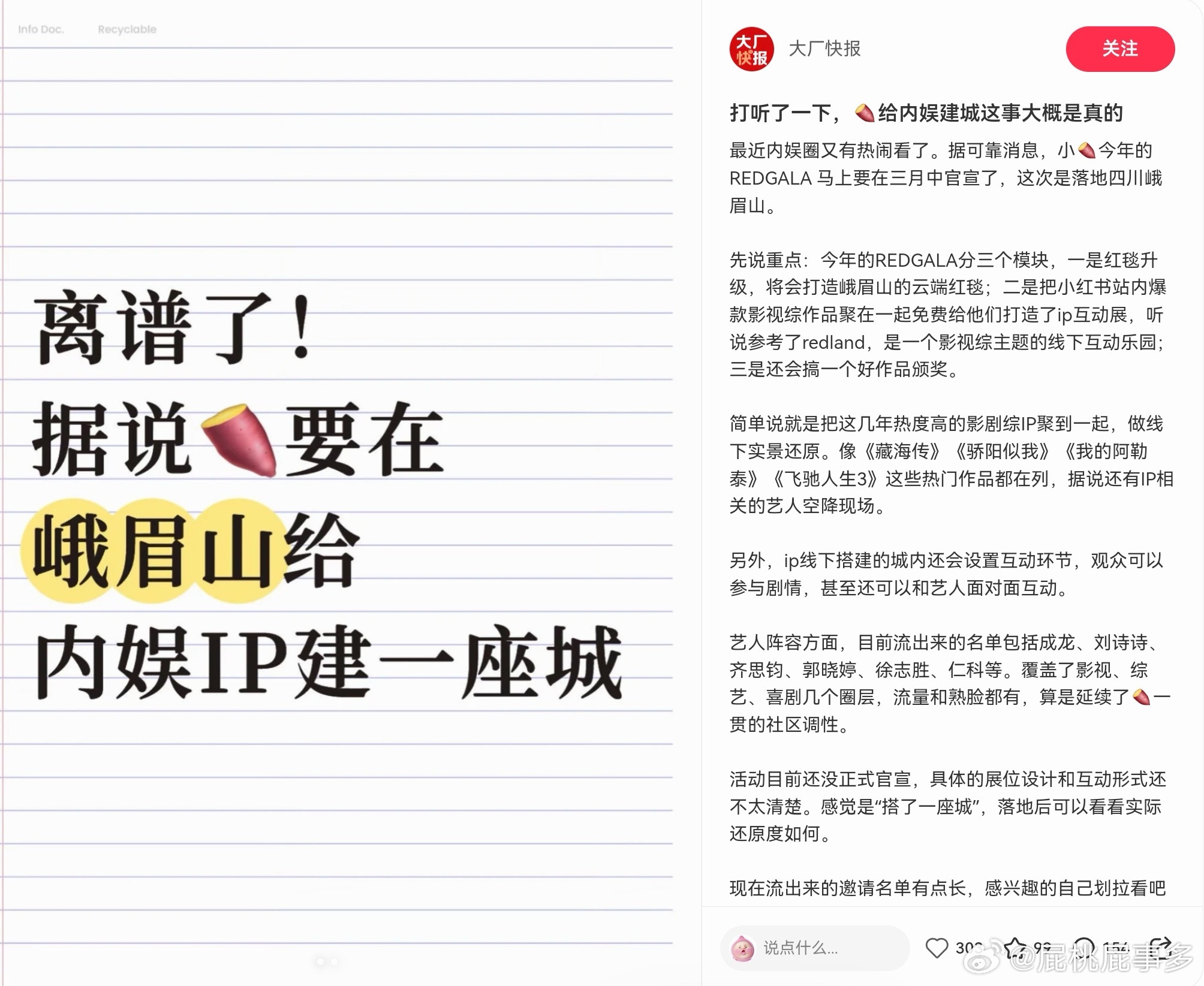 热乎新瓜🍉RedGala 要官宣啦!内娱顶流齐聚峨眉山,阵容直接炸场🔥