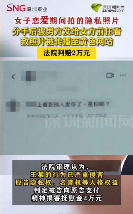 湖南长沙,女子突然收到朋友的提醒,对方称在某网站看到女子的不雅照片并将照片转发给女子。女子看了照片后确认是前男友当初拍的,气得直接报了警。调查中发现,前男友不仅将女子的不雅照放到了网站上,还转发给了女子的再前一任男友。女子一怒之下,将前男友告上了法院,索要精神损害抚慰金2万元。 据悉,张女士与前任男友李某分手后不久,结识了男子王某,二人很快便进入了恋爱期。期间,在王某的哄骗下,张女士同意拍了一些不雅视频和照片。 然而张女士与王某的恋情并未持续多久,由于王某的一些行为让张女士感到不满,张女士提出了分手,但王某却不同意,甚至拿着张女士的不雅照片进行威胁。但张女士并未妥协,坚持分手。 可谁曾想,在二人分手后不久,张女士的朋友在浏览某网站时,意外发现了张女士的不雅照片。 当朋友将照片发给张女士时,张女士还没注意照片上的是谁,只看到了一个未穿衣服的女子,她还指责朋友没个正行。 直到朋友提醒,张女士才仔细辨认了照片上的人,结果发现就是自己本人。这下张女士慌了,自己的不雅照怎么会在朋友那? 朋友解释是从某个网站上看到的,发现不对劲就给张女士转过来了。 后经过辨认,张女士确认这些照片就是王某拍摄的,气得立即报了警。 随后,警方传唤了王某,王某也如实交代了是他将张女士的不雅照片传到网站上去的。不仅如此,王某还把张女士的照片发给了张女士的再前一任男友李某。 警方认为,王某的行为已经侵犯了张女士的个人隐私。按照《治安管理处罚法》第50条第6项规定,偷窥、偷拍、窃听、散布他人隐私的,处5日以下拘留或者1000元以下罚款;情节较重的,处5~10日拘留,可以并处1000元以下罚款。 第80条规定,利用信息网络、电话以及其他通信工具传播淫秽信息的,处10~15日拘留,可以并处5000元以下罚款;情节较轻的,处5日以下拘留或者1000元~3000元罚款。 王某的行为同时触犯了《治安管理处罚法》中两项违法行为,所以应当分别认定,合并处罚,最长的行政拘留期限不超过20日。 在王某接受行政处罚期间,张女士因为不雅照被泄露一事差点自杀,她不敢去公司、去面对朋友。后在家人不断地安抚下,称这不是张女士的错,这才让张女士好受了一些。 之后,张女士将王某告上了法院,她认为王某的行为已经对其生活、工作、交友造成了严重影响,故要求王某赔偿2万元的精神损失费。 民法典第1183条规定,侵害自然人人身权益造成严重精神损害的,被侵权人有权请求精神损害赔偿。 既然警方已经坐实了王某存在侵犯张女士隐私的行为,那说明案件事实是没有问题的,那就看精神赔偿能支持多少了。 在法律实践中,精神损害赔偿数额是依据侵权人的过错程度,所造成的后果,是否获利,案发地的居民平均生活水平等综合因素决定的。 法院经审理后认为,王某的不当行为造成张女士差点轻生,对张女士的工作和生活也造成了严重影响,故支持了张女士的主张,判决王某应当限期内赔偿张女士2万元精神损害抚慰金。 最后,情感纠纷不能成为违法宣泄的借口。如经查实,王某还将张女士的大量照片散布至某些不正经网站上,可能会面临相应的刑事处罚,可见法律对个人隐私的保护力度不容小觑。 此外,我们也要提醒广大女性朋友,不管是恋爱期间或者婚内,都要保持清醒与审慎,坚决拒绝拍摄私密影像,因为这可能会成为日后被要挟、被报复的把柄,我们要从源头规避隐私泄露的风险。 对于此事,大家怎么看?欢迎留言交流看法。