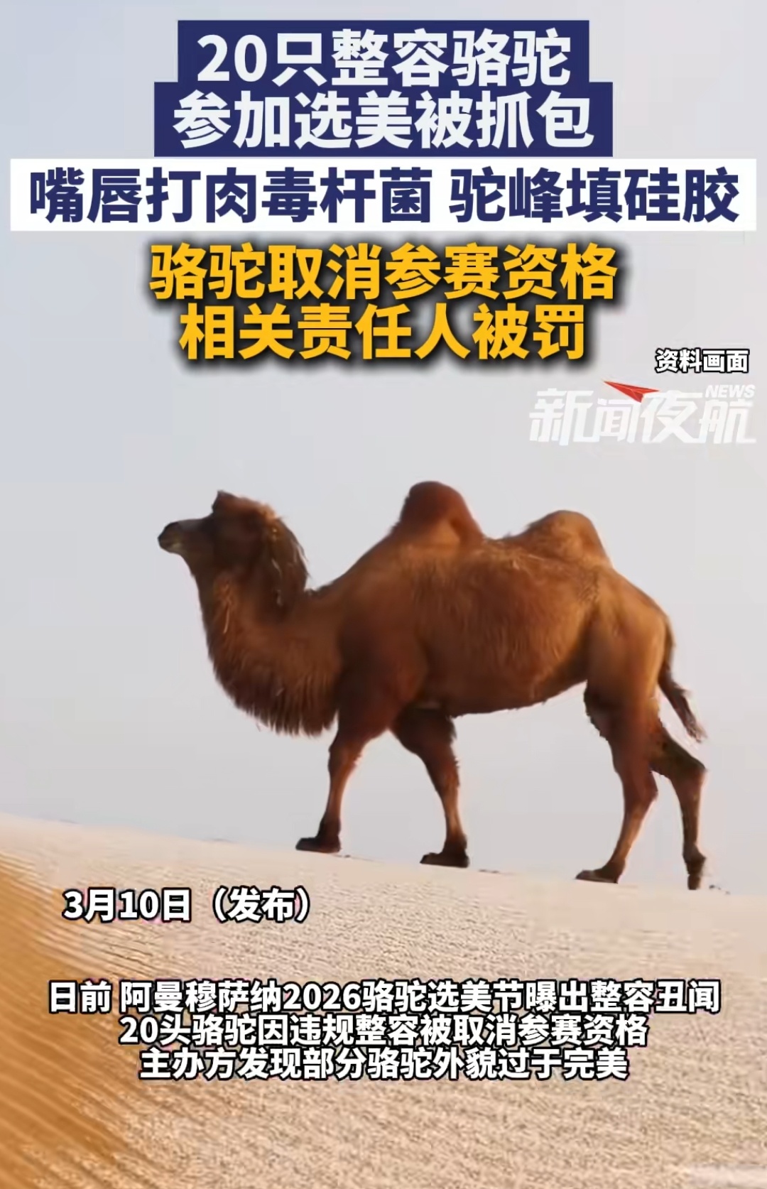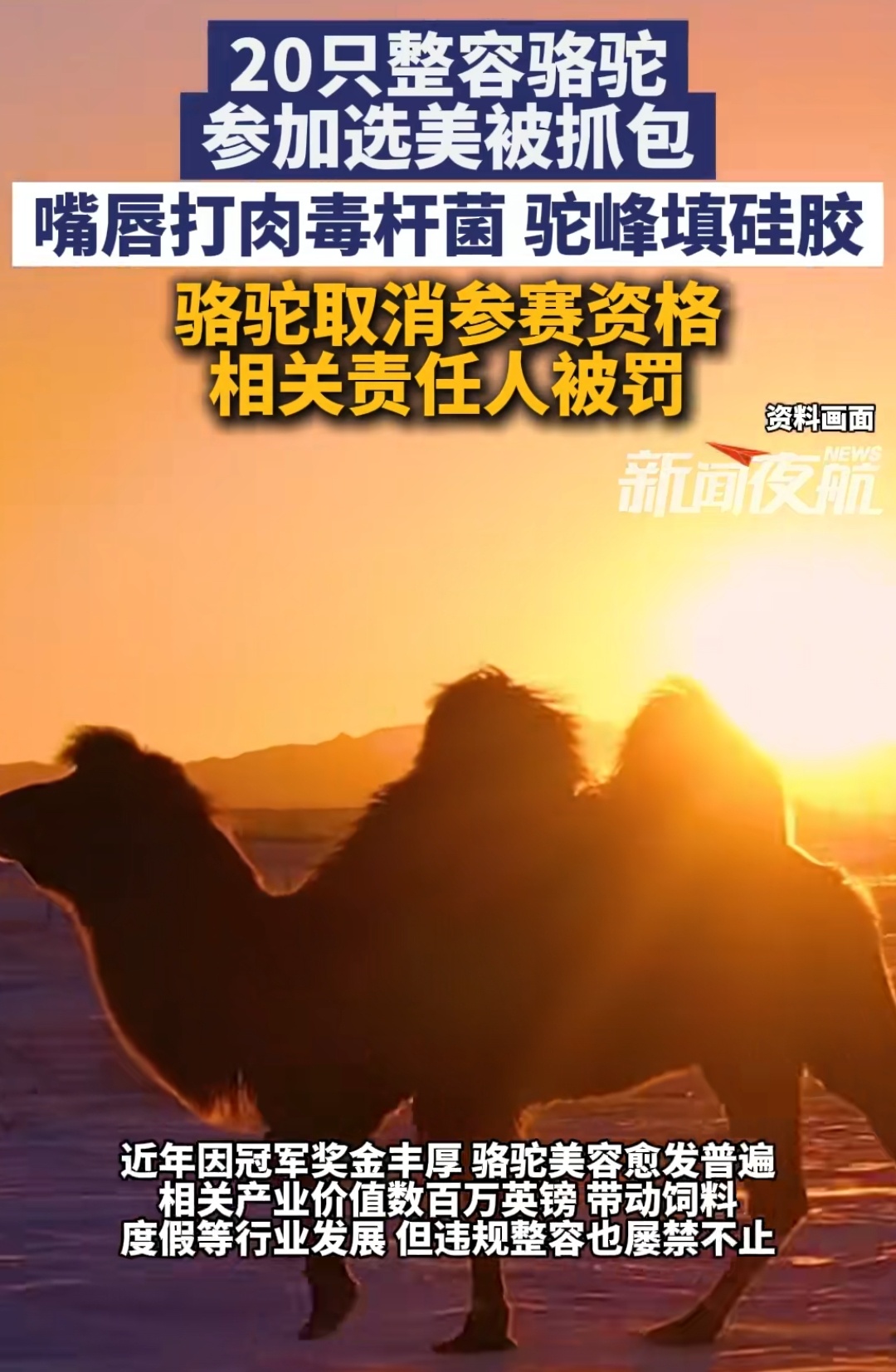 骆驼🐪选美比赛,这些人为了赢奖金,给骆驼的嘴唇打肉毒杆菌,驼峰填硅胶