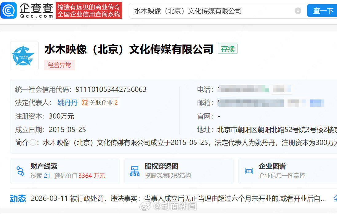 李金铭关联公司被吊销执照 李金铭关联公司多项违规被罚 企查查APP 显示,近日,水木映像(北京)文化传媒有限公司新增两则行政处罚,因未在登记住所经营、未按时报送年报、税务状态非正常,且成立后无正当理由超 6 个月未开业或停业超 6 个月,被责令改正并吊销营业执照。该公司成立于 2015 年 5 月,注册资本 300 万元,由原始、李金铭等人共同持股。