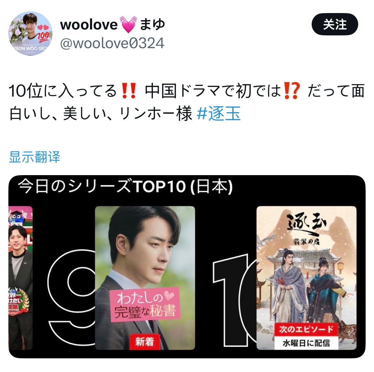 逐玉实绩🈶成功入榜日本网飞TOP10,还是首部入榜的中国电视剧!
