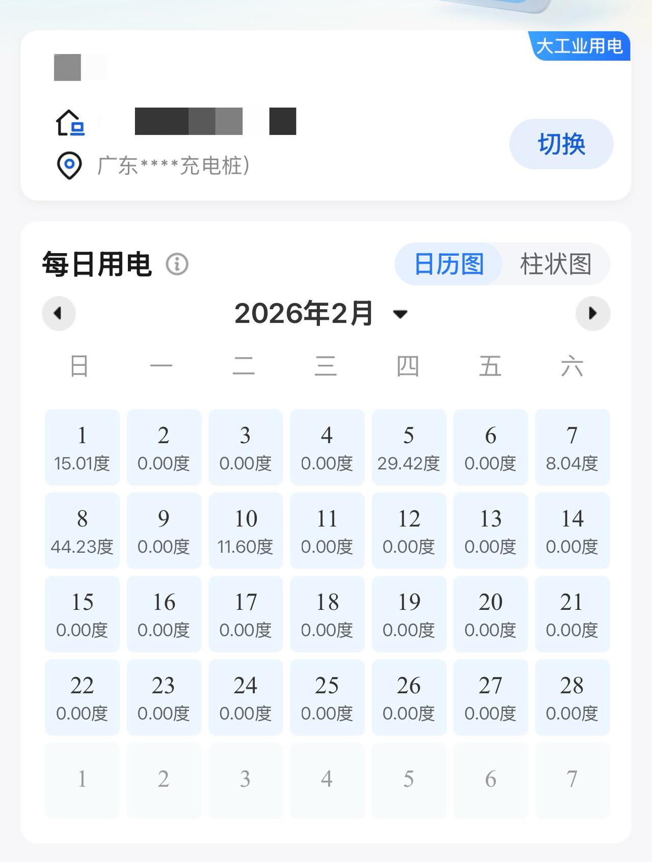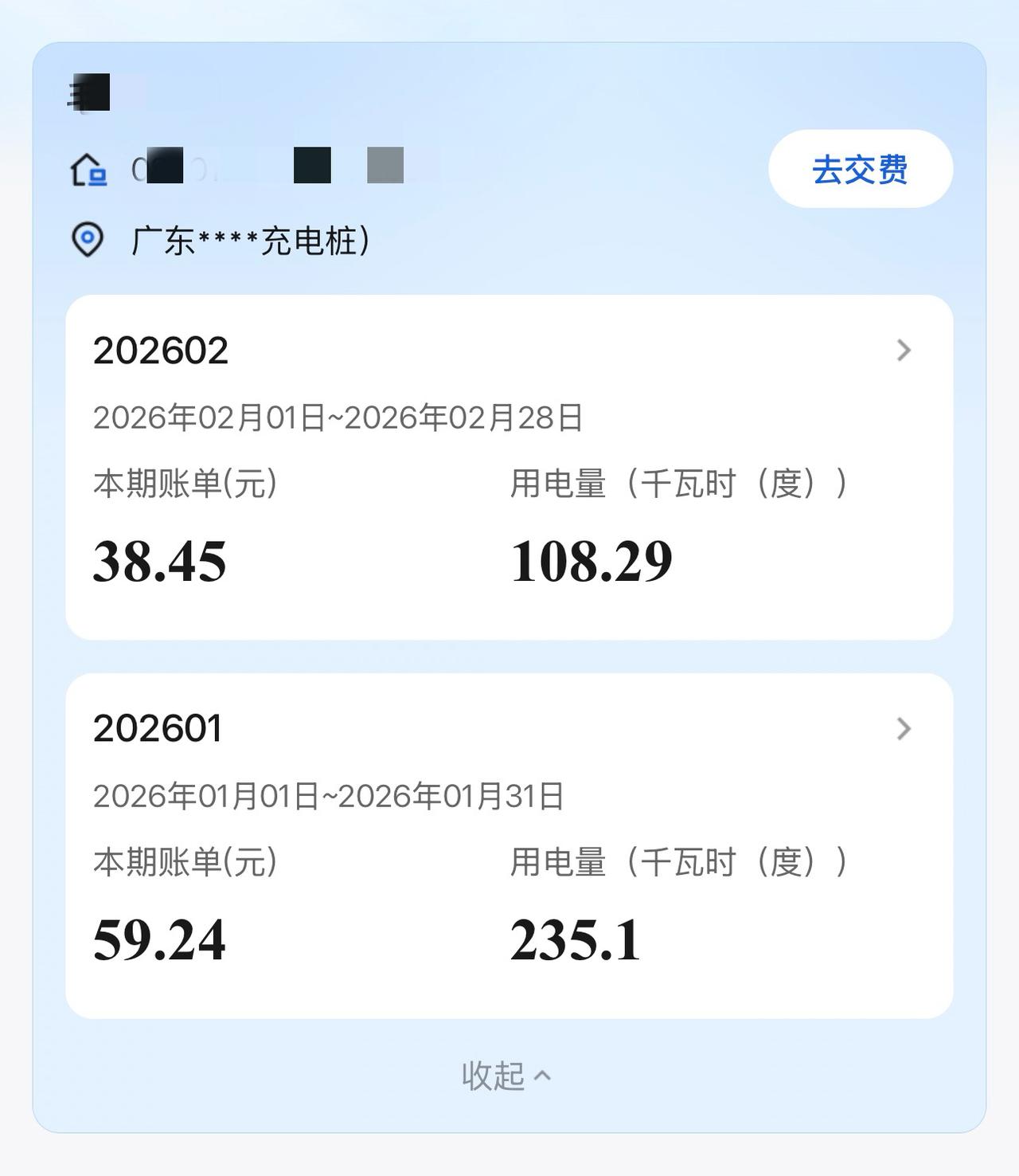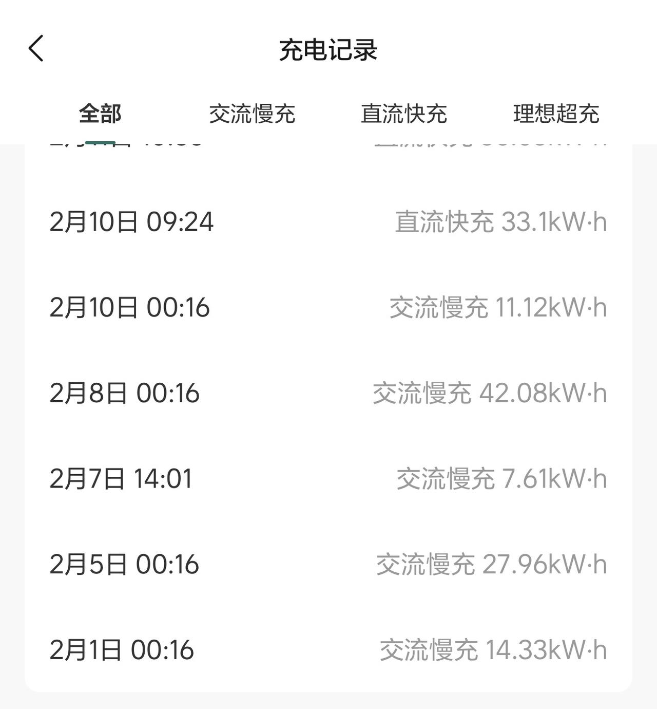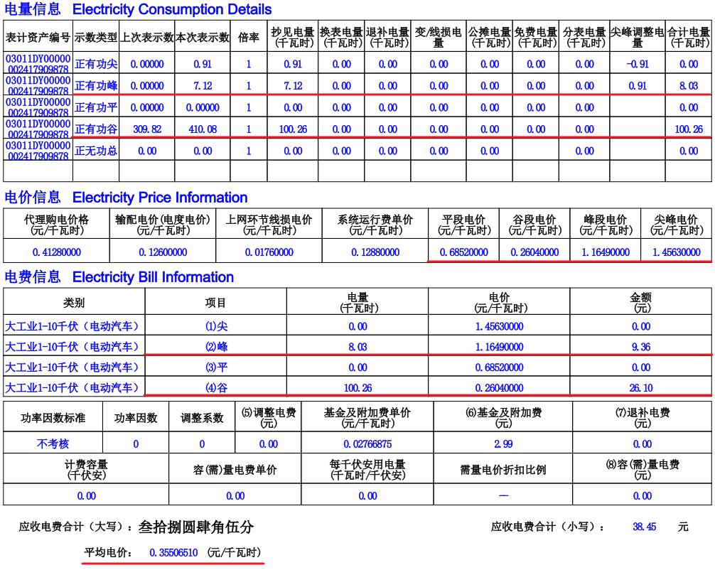 查看了一下家用汽车充电桩的用电情况,坐标广州,现在有个四电价:分别为平段电价(0.6852元/度)、谷段电价(0.2604元/度)、峰段电价(1.1649元/度)、尖峰电价(1.4563元/度)。 目前峰谷时段为: 高峰:10:00-12:00;14:00-19:00 低谷:0:00-8:00; 平段:8:00-10:00;12:00-14:00;19:00-24:00 暂时不执行尖峰电价,所以只有三个电价时段,2月春节充电108.29度,费用38.45元,其中高峰充电8.03度,低谷充电100.26度,平均电价0.355元/度,不过平常没有特殊情况都是预约0:15-7:30之间的低谷充电,电价0.2604元/度。 不过中间有些损耗,比如我2月1日汽车APP上显示充电14.33度,但供电局的账单上则显示15.01度,中间损耗0.68度;2月5日慢充电27.96度,供电局账单上显示29.42度,中间损耗1.46度。【来自懂车帝车友圈】