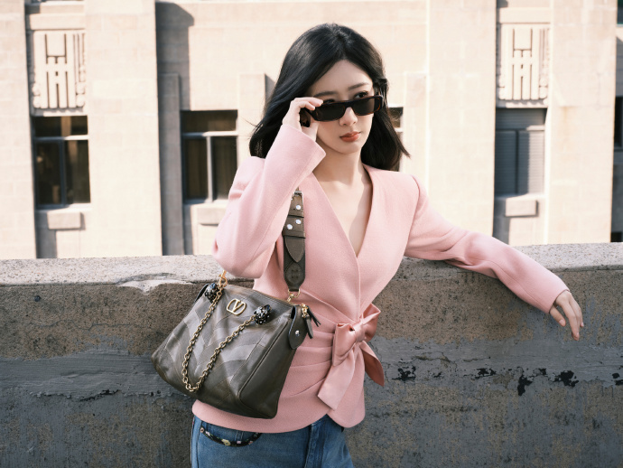 杨紫机场粉西装造型 杨紫出发罗马粉西装造型,杨紫前往罗马时装周,粉西装牛仔裤墨镜造型,气场十足啊~