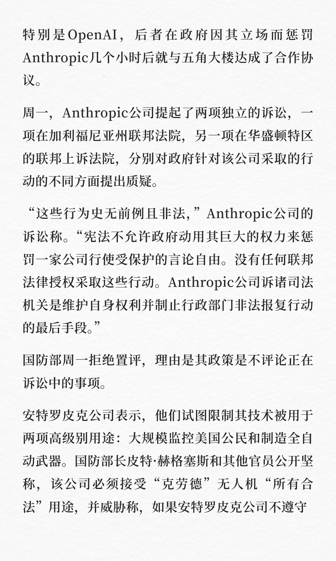知名人工智能公司:起诉特朗普政府