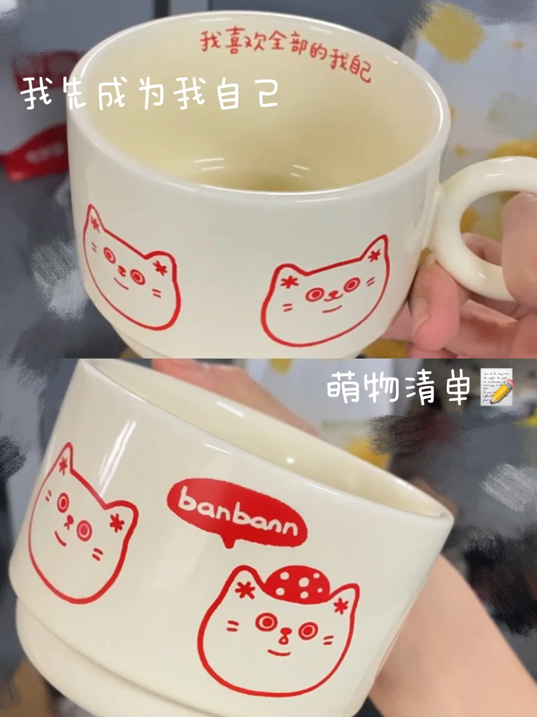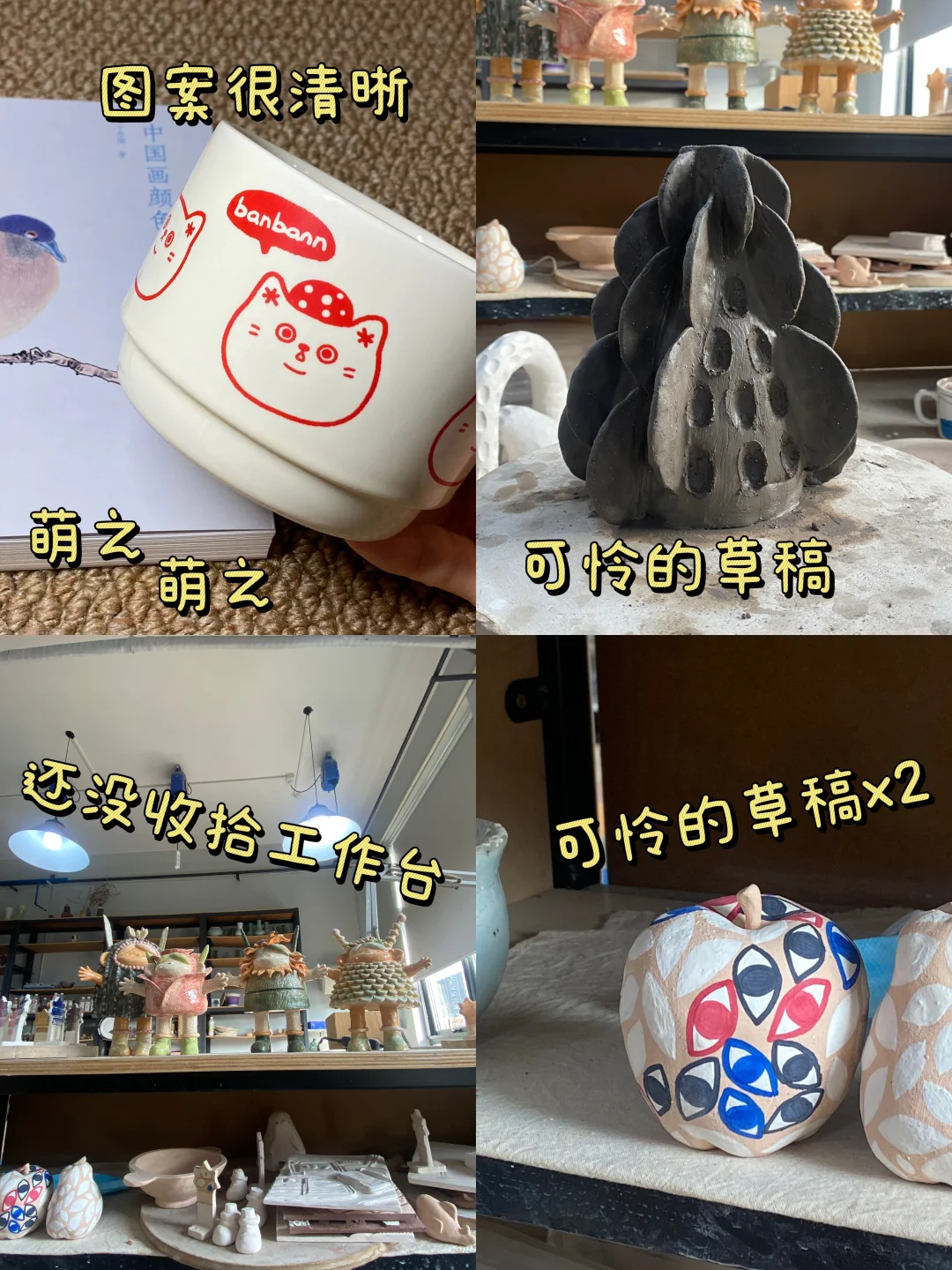 ·第n次开学东方夏威夷怎么不算是夏威夷呢^_^ 来到夏威夷了这次带着苹果香蕉冰箱贴和小瓷杯一起开学 ·长满了眼睛的陶瓷香蕉和长眼睛的苹果🍎都是试验品,苹果还没烧 ·新整出来一个镂空字体很喜欢配上很有质感的两个徽州文创冰箱贴,这个小猫舞鱼灯设计到我心坎上了🐈 ·把准备喝牛奶的杯子准备好了😋 等了很久的banbann choice小猫陶瓷杯,手感很扎实,做工也精致,很适合在宿舍用! ·萌之萌之🥳准备大扫除 工作室窗外的阳光好好又是愉快的一周