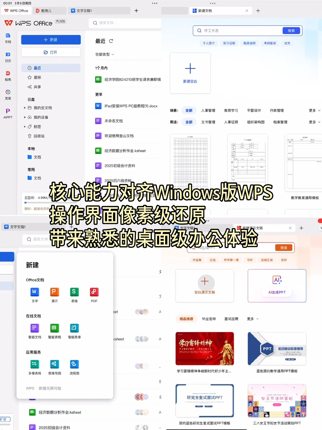 打工人终于等到iPad的真・桌面级WPS了!WPS官宣的iPad生产力版本,把完整的桌面级WPS Office搬进了iPad。要知道,以前iPad上的WPS移动版虽然针对触屏做了优化,但功能性和PC端差距真的很大,现在终于有了史诗级更新。