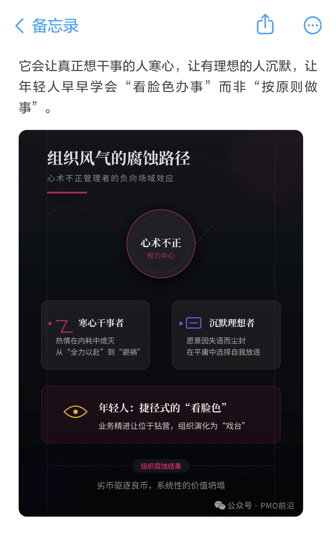 人们常说“兵熊熊一个,将熊熊一窝”,其实更可怕的是——将不熊,却心术不正。 他们表面勤勉,实则算计; 看似推动工作,实则经营地盘。 你遇到过这样的中高层吗?