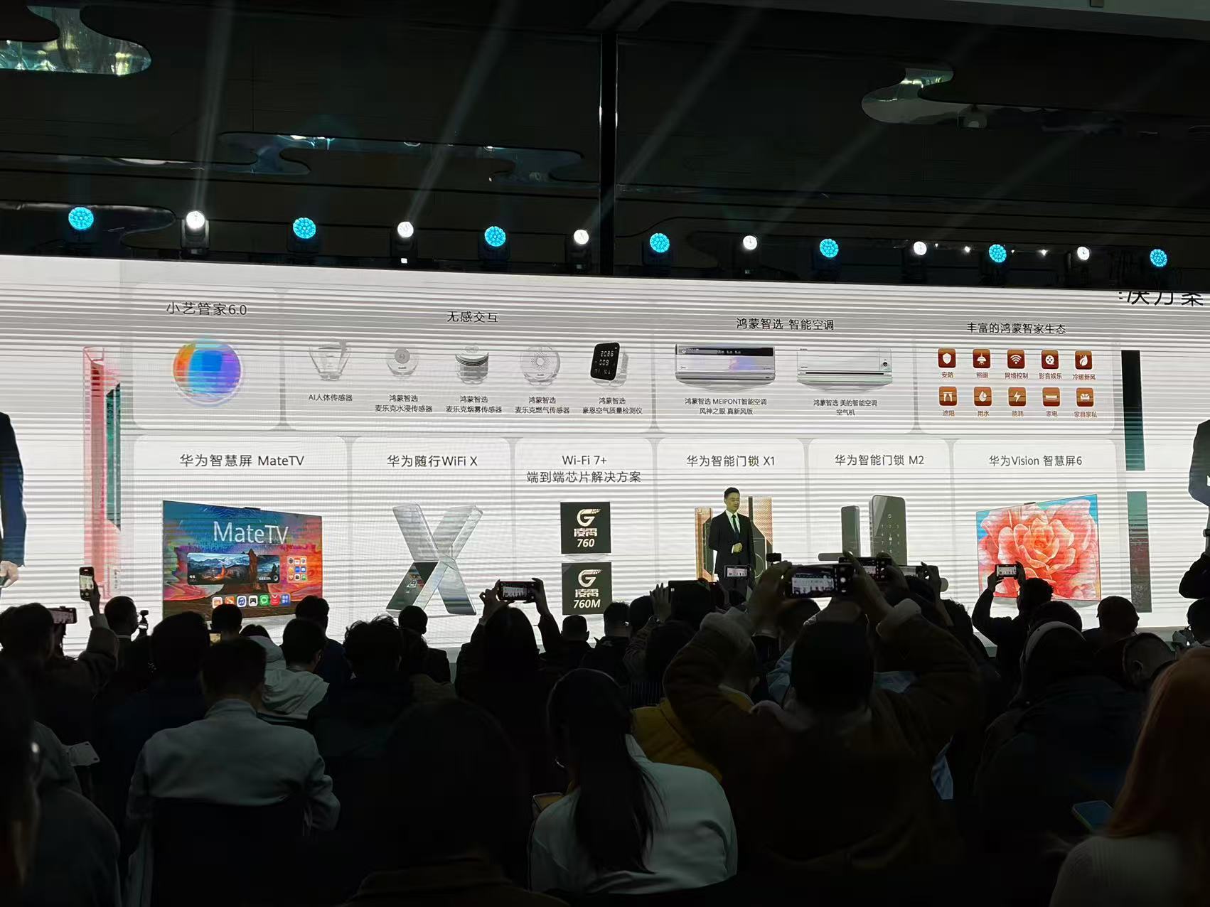 硬件方面也发布了多款新品:全新的 Vision智慧屏 6 采用4.9cm超薄设计和低反黑晶屏;MateTV 即将升级鸿蒙6,并支持触控板与手写笔;智能门锁2系列加入 3D人脸识别和掌静脉识别。