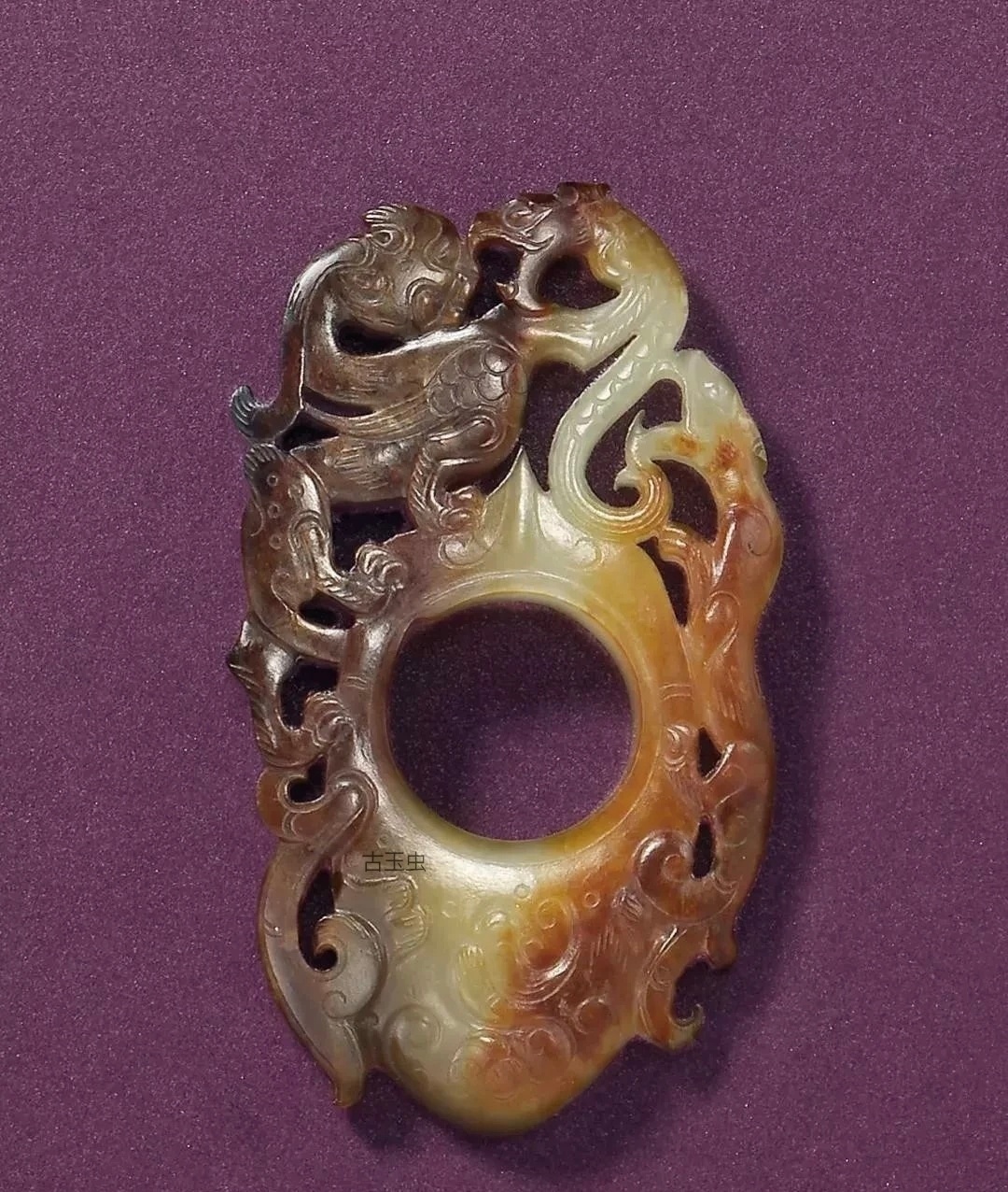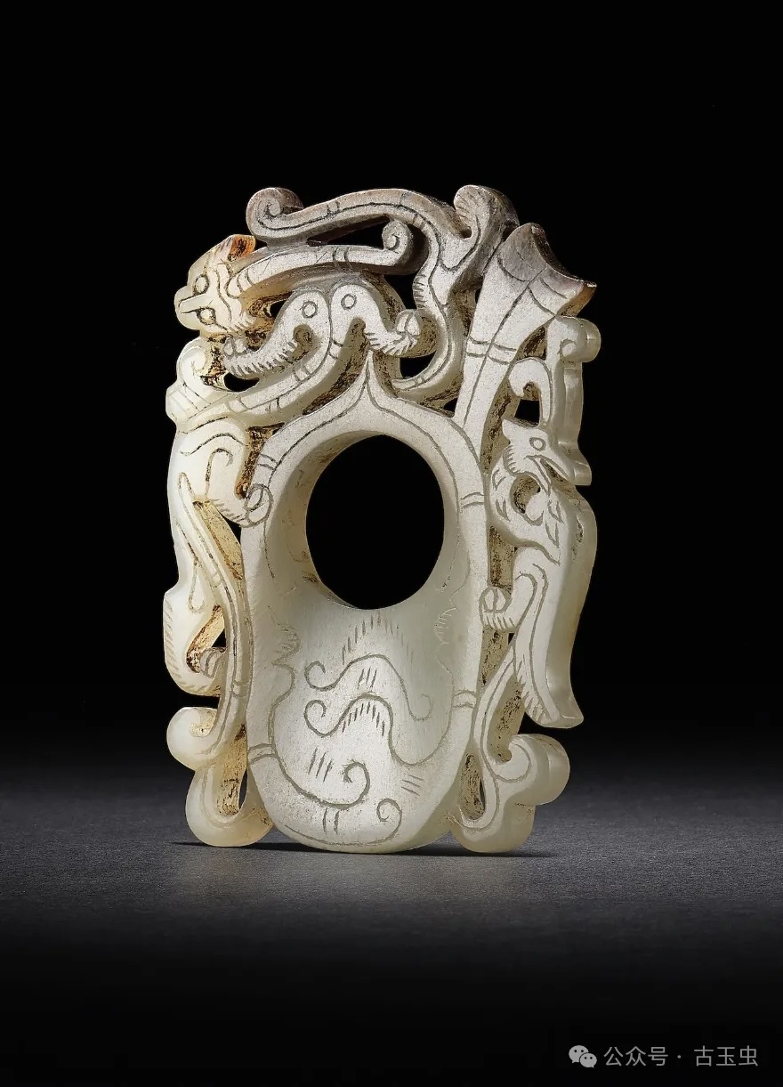古玉杂谈 这里有商代的韘,见1图,有战国的韘,见2图,也汉代的韘,见3图。造型最漂亮的是汉代的螭龙韘,见8图。 上海
