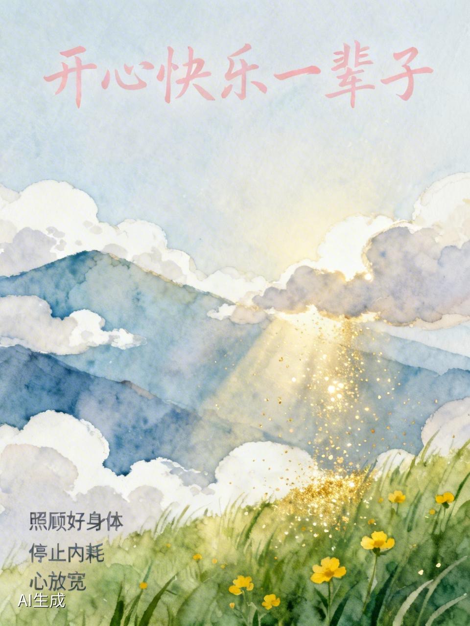 想开心快乐一辈子,说难也难,说简单也简单。现在生活节奏快,压力大,很多人都被焦虑和低落情绪包围。 其实,快乐就藏在日常习惯里。先照顾好身体,保证睡眠,别熬夜,抽时间出门走走、晒晒太阳,饮食上少吃油腻多吃新鲜食物,身体舒服了,心情自然好。 还要停止内耗,别老纠结过去、担心未来,也别老跟人比较。允许事情不完美,允许自己犯错。不钻牛角尖,心放宽,快乐就会来。另外,戒掉攀比,懂得知足,别老盯着别人的生活,珍惜自己拥有的,这样就能开心快乐一辈子啦。 永葆快乐的心情 心态放宽常开心 /幸福快乐语录 /
