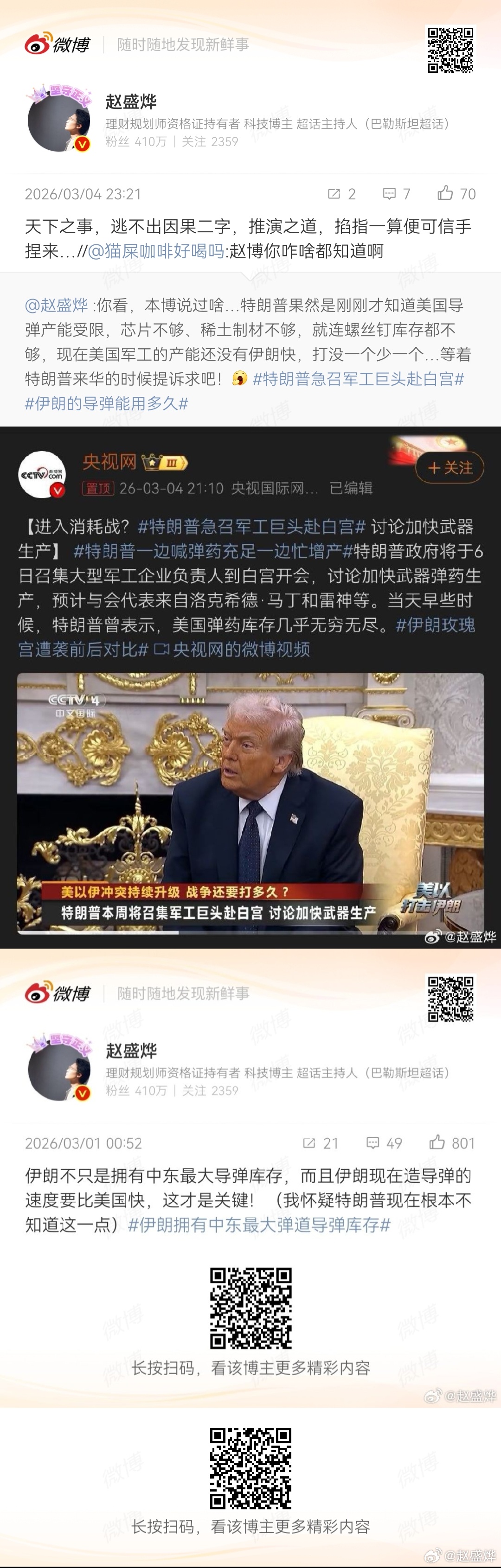 伊朗卫国战争发生以来,这位网友的预判就一直是神一样的准确,不对,是战争发生之前就已经做到了完全精准的预判,毫厘不差!本博真的对这位中国网友佩服得五体投地,崇拜之情油然而生!这也太厉害了吧!!!特朗普说对伊行动即将结束每天花费近9亿美元美国要打不起了