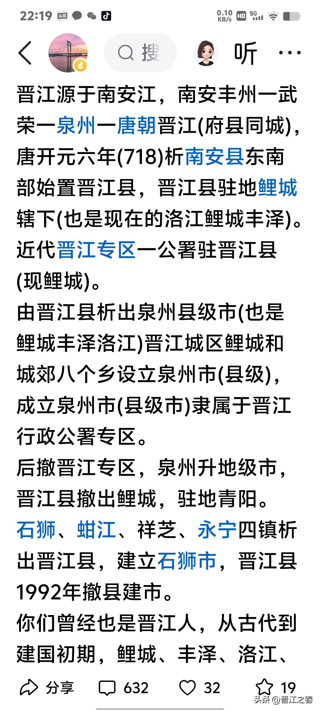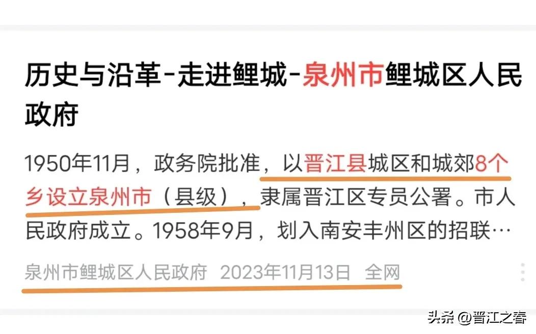 晋江市就是晋江县的千年延续! 历史脉络清晰! 晋江得名,晋朝 "永嘉之乱″,″衣冠南渡″ ,″八姓入闽″ , 晋人南迁沿江而居,思故土,把南安江改为晋江。 而晋江县置县于唐朝开元六年(718年),再以晋江这条江名命为晋江县!晋江县一千多年来,晋江县从来没有变更或改过名字! 1951年晋江县县衙才从鲤城撤到青阳镇,县名也一直是沿用晋江县,直到1992年晋江县才撤县建市一晋江市!