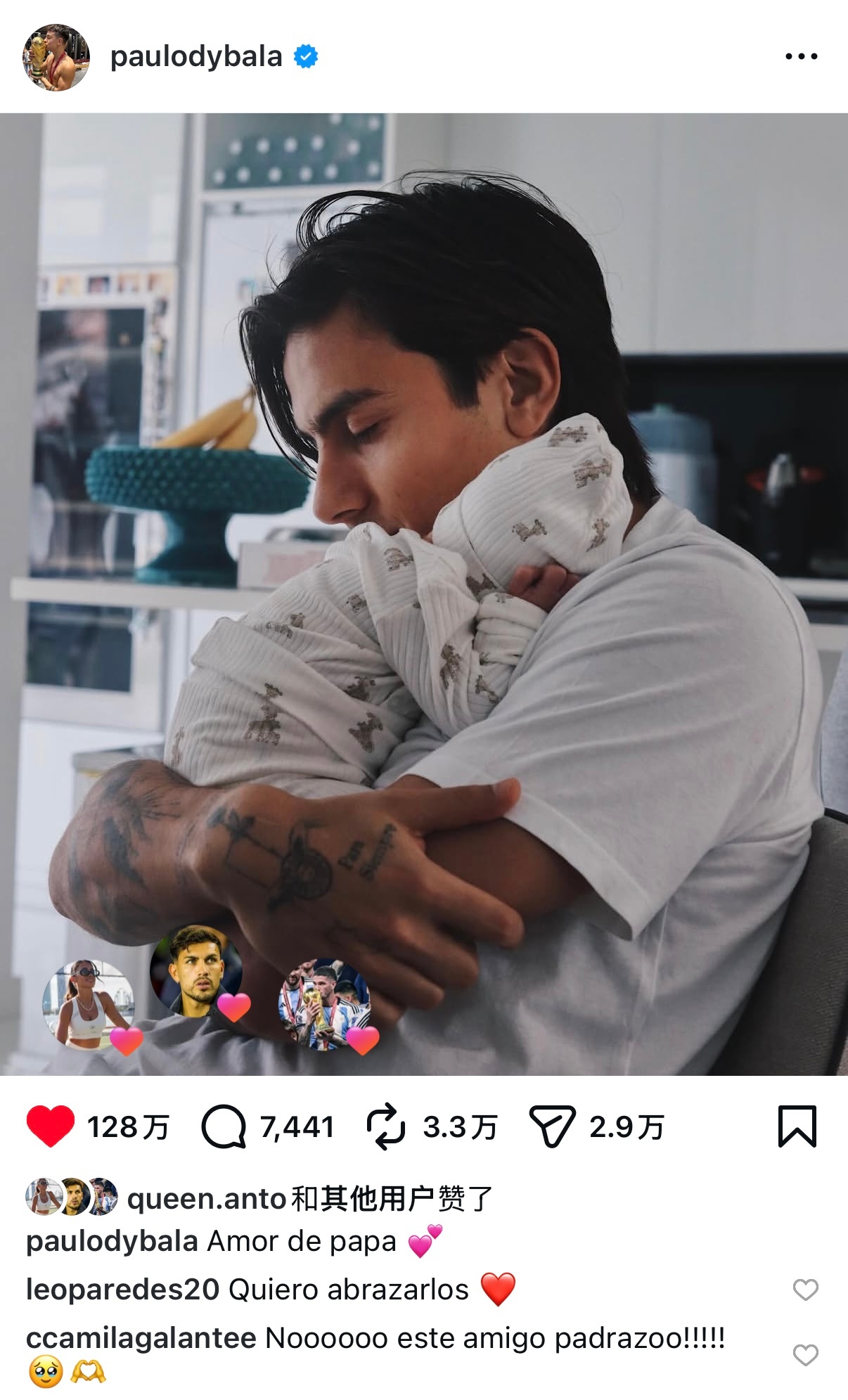 迪巴拉更新ins|爸爸的爱💕