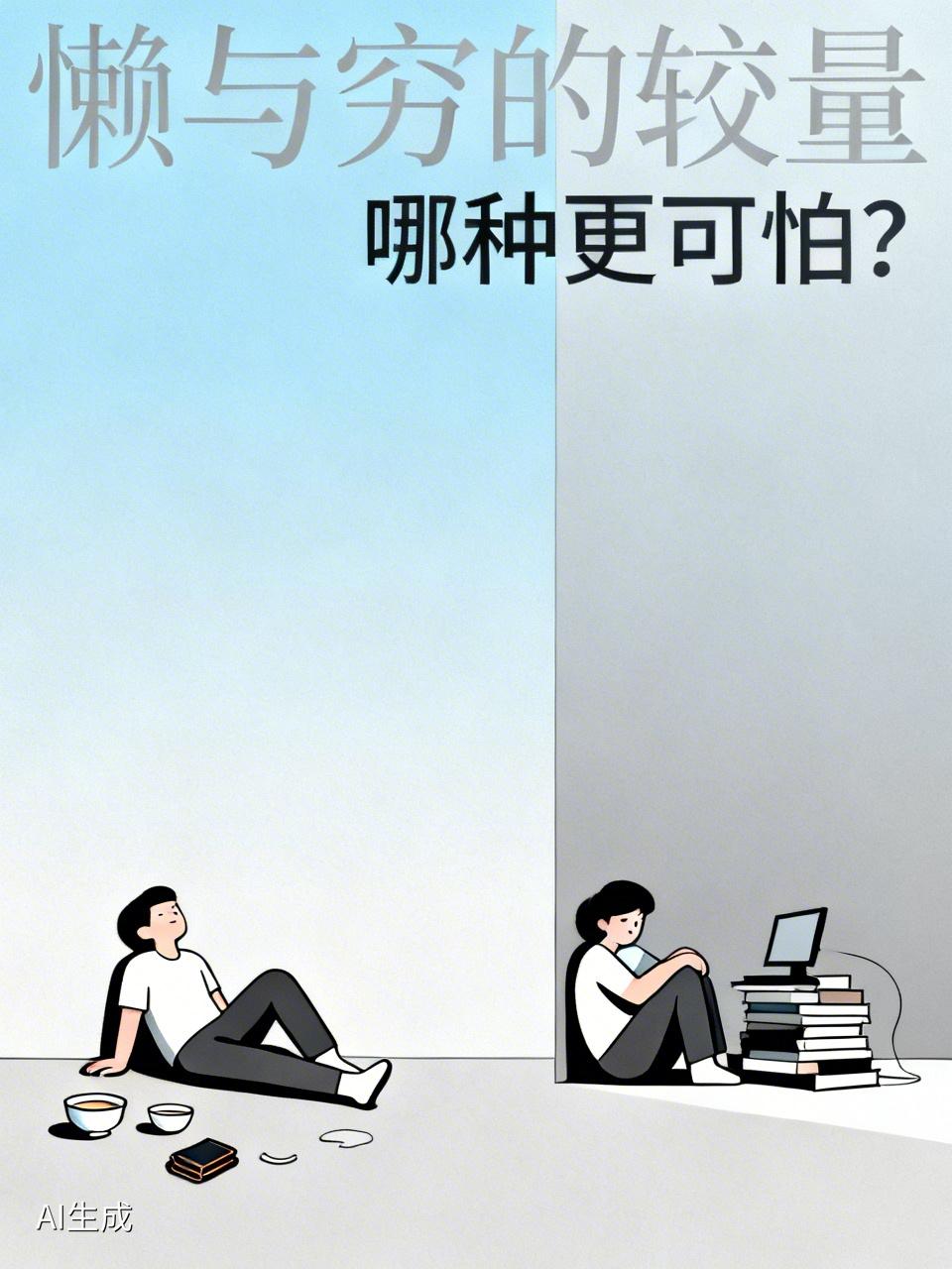 懒和穷哪个更可怕?我觉得懒更可怕。穷只是一时的困境,像很多出身贫寒的人,通过努力打拼实现了人生逆袭。但懒是一生的深渊,会把所有机会挡在门外。 因为懒,人没了动力和压力,不愿劳动工作、学习锻炼。很多人不是输在起点,而是败在日复一日的拖延与懈怠里。年轻总觉得机会多,人到中年才懂,懒会偷走时间,而穷只是暂时状态。真正拖垮人的不是贫穷,而是安于现状的惰性。所以,戒掉懒散,生活才会慢慢好起来。