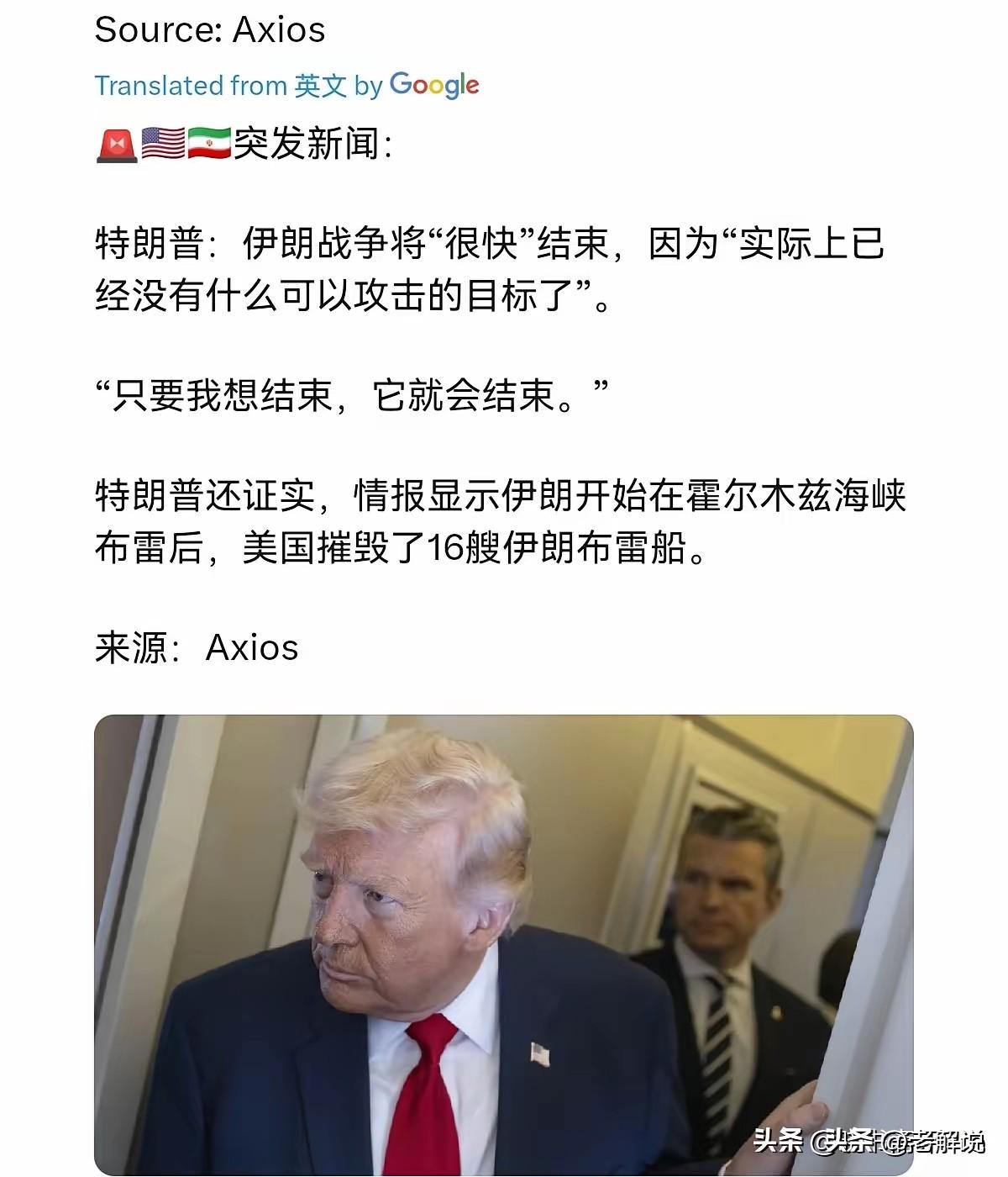 特朗普:只要我想结束,它就会结束!3月11日,美国总统特朗普表示,伊朗战争将“很快”结束,因为几乎没有什么可以攻击的了。只要我想结束,它就会结束。不仅如此,特朗普亲口还证实称,在情报显示伊朗开始在霍尔木兹海峡布雷后,美国在霍尔木兹海峡摧毁了16艘伊朗布雷船。 特朗普这话说得真是滴水不漏,像极了他一贯的风格。表面上是在宣布胜利,说“战争很快结束”、“伊朗没什么可炸的了”,但实际上这句话怎么理解都行,既能安抚国内觉得打太久的老百姓,又能向对手递话,还能给自己脸上贴金。这就像打牌的人,手里明明快没牌了,却非要拍桌子说“我不玩了,让你赢”,气势上绝对不能输。 他说摧毁了16艘伊朗的布雷船,这数字听着挺具体,但在这节骨眼上,更像是在给自己这十几天的军事行动做一个阶段性的总结,告诉美国人:你看,我没白花钱,干了不少实事,伊朗的海军快被我打残了,咱差不多可以收工了。 但仔细琢磨一下,这事儿远没那么简单。特朗普说“只要我想结束,它就会结束”,这话更像是说给美国选民听的,展示他的绝对控制力。可现实是,这场仗打到现在,已经不是他一个人说了算的单机游戏了。 就在他发表这番言论的同时,伊朗那边明确放话了,说“战争的结束由伊朗决定”。这就好比两个人打架,一个按着另一个打,然后说“我打够了,不打了,咱们结束吧”,可底下那个正憋着劲儿要翻身,你说结束就结束? 伊朗现在虽然被炸得够呛,基础设施和海军力量肯定损失惨重,但他们手里还攥着霍尔木兹海峡这张王牌,还有那些打游击的无人机和导弹,这些都不是短时间内能被彻底清除的。 再说他提到的这16艘布雷船,这里面其实藏着挺深的门道。美军前几天刚发了警告,说伊朗利用民用港口搞军事行动,让平民赶紧躲开。紧接着就爆出炸了这么多船,这背后的逻辑链条就很清晰了:美国这是在给动武铺路,先把法律和舆论的步子走完,再动手。 炸船是手段,真正的目的是彻底掐断伊朗封锁海峡的能力。霍尔木兹海峡是全球石油的大动脉,如果伊朗真在那儿布了水雷,国际油价能直接窜上天,美国国内的通胀和中期选举就得全完蛋。 所以特朗普必须用最强硬的手段,把伊朗这个念头彻底摁死。他说的“20倍打击”听起来像夸张的狠话,但在这个问题上,他绝对是认真的,因为这关系到美国的经济命脉和他的政治前途。 不过,最有意思的一点是,尽管特朗普把战果吹得天花乱坠,说伊朗“没有海军、没有空军、什么都没剩下”,但他的实际行动却暴露了真实的焦虑。 一方面,他急着宣布胜利想撤;另一方面,他的顾问们私下里都在催他赶紧找个台阶下,因为油价扛不住,选民也开始烦了。这哪像是一个胜券在握的统帅,分明是一个被架在火上烤、急着脱身的赌徒。 战争确实可能很快结束,但结束的方式大概率不是伊朗跪地求饶,而是美国单方面宣布“我们赢了,任务完成”,然后扭头走人。 至于伊朗答不答应,会不会在美国宣布结束后还继续放冷枪、炸油轮,那就是另一个让人头疼的问题了。这场戏,离大结局还早着呢。