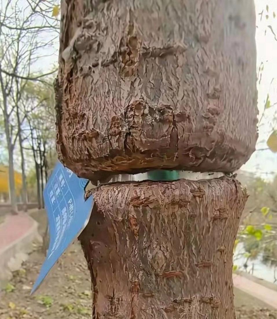 恶作剧!谁这么缺德,给大树中间扎一道铁丝! 某地绿化带上,突然见一大树好奇怪,初看以为是大树被人中间砍断,后又被拼上去的。 仔细看看,原来是一棵榆树中间,被人扎了一圈紧紧铁丝!它像金箍咒一样牢牢扎在树中间,见状后让人气愤难平! 我就不理解,好好的一棵大榆树,为啥要干这样缺德事呢?树它不会说话,但它是有生命的啊!难怪它一直忍气吞声,疼痛难忍,真的好憋屈!这完全是坏人恶作剧啊! 照片来自网络