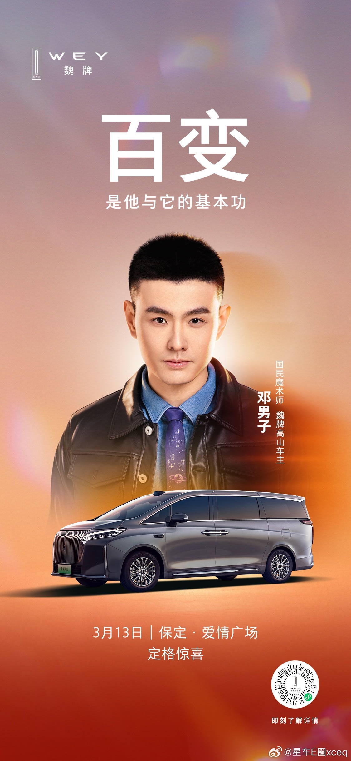 当魔术的巧思,遇上空间的魔法,百变,从来都是他们的基本功。官宣!国民魔术师邓男子,正式成为魏牌高山车主。3 月 13 日下午17:30,保定爱情广场,一场惊喜盛宴,即将启幕。为什么明星都选魏牌高山魏牌高山邓男子成为魏牌高山车主