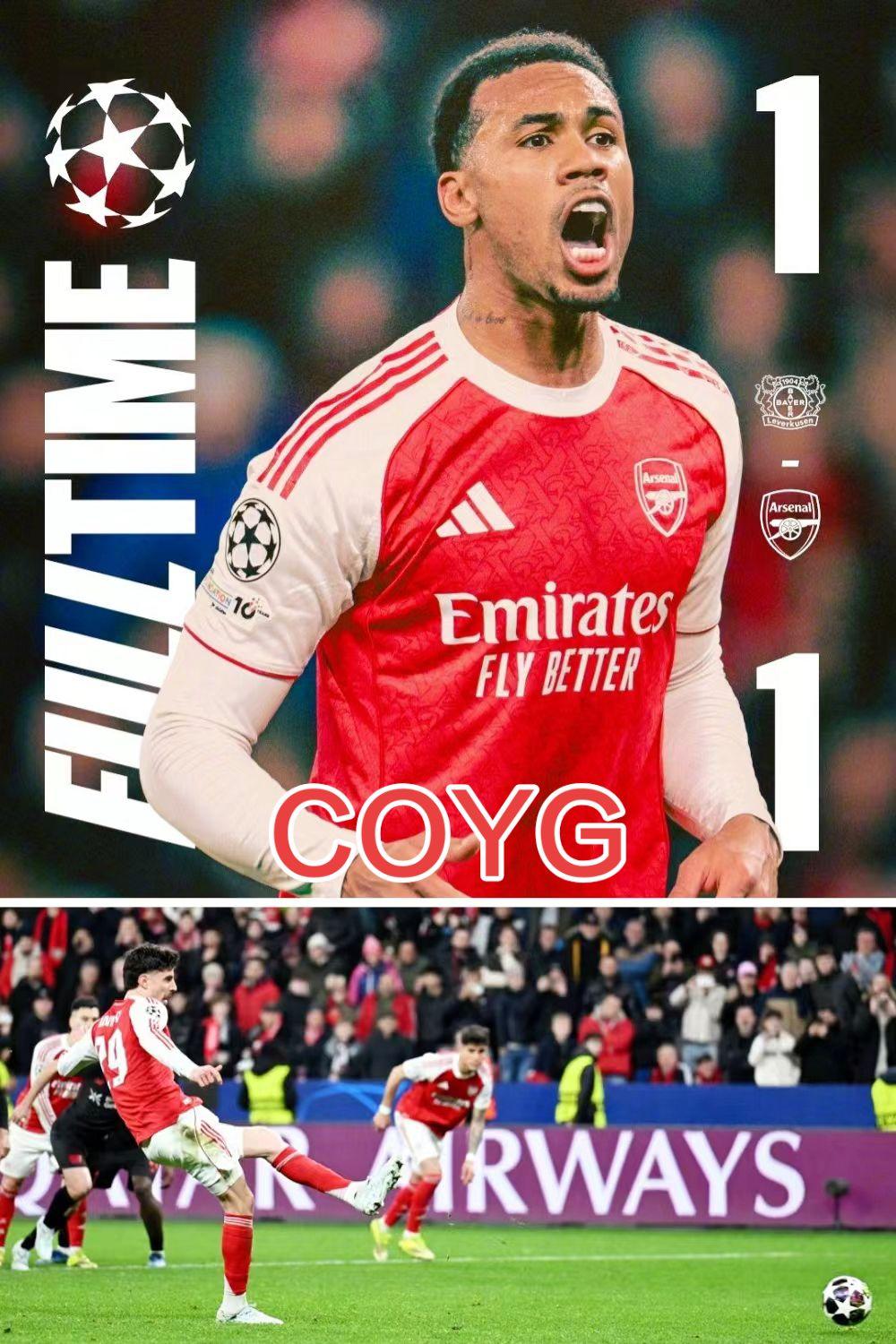 哈弗茨89分钟点球将比分扳平。 本场比赛踢得不好,不想去单独批评某一个人,而是铺开来说。包括阿森纳球员以及球迷,应该都太过傲慢和散漫了,没有把对手放在眼里,觉得自己抽到了好签。对手勒沃库森比赛的强度并没有过高,枪手没有去年拼皇马的决心和动力,完全把自己放在高位去蔑视对手,心态方面就有问题。比赛中也没有打出多少实质性有威胁的进攻,战术思维以及团队配合也不到位。这都是我们需要反思的问题。还好棍儿哥终场前造点扳平来挽尊,不然所谓的争冠大热门将成为笑柄。 当然我们也没有必要过度悲哀,我们尽快调整第二回合回到主场还有机会。再看看其他几支英超球队的赛果,几乎全遭爆锤,心理还算得到一丝无奈的安慰吧。 3月15日本周日,阿森纳将在主场迎来与埃弗顿的联赛比赛。对手近期状态不错,近10轮客场也仅输给切尔西一场,而且体能更佳,阿森纳将再次面临严峻考验,期待各位的表现了。 加油枪手!胜利属于我们! COYG!@阿森纳足球俱乐部 欧冠 阿森纳
