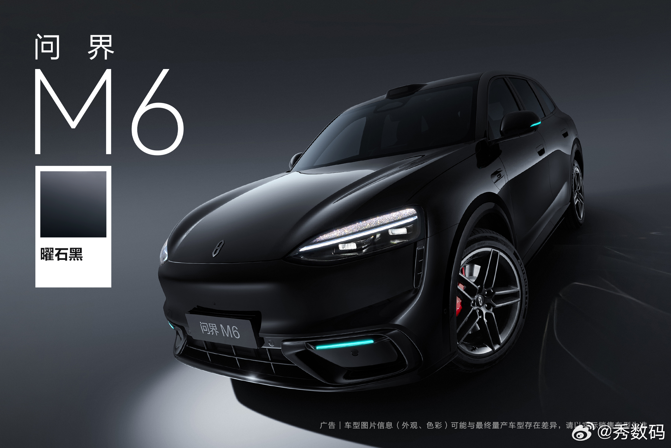 【鸿蒙智行问界M6曜石黑官图公布:蓝色微光点缀黑色车身】鸿蒙智行公布问界M6"