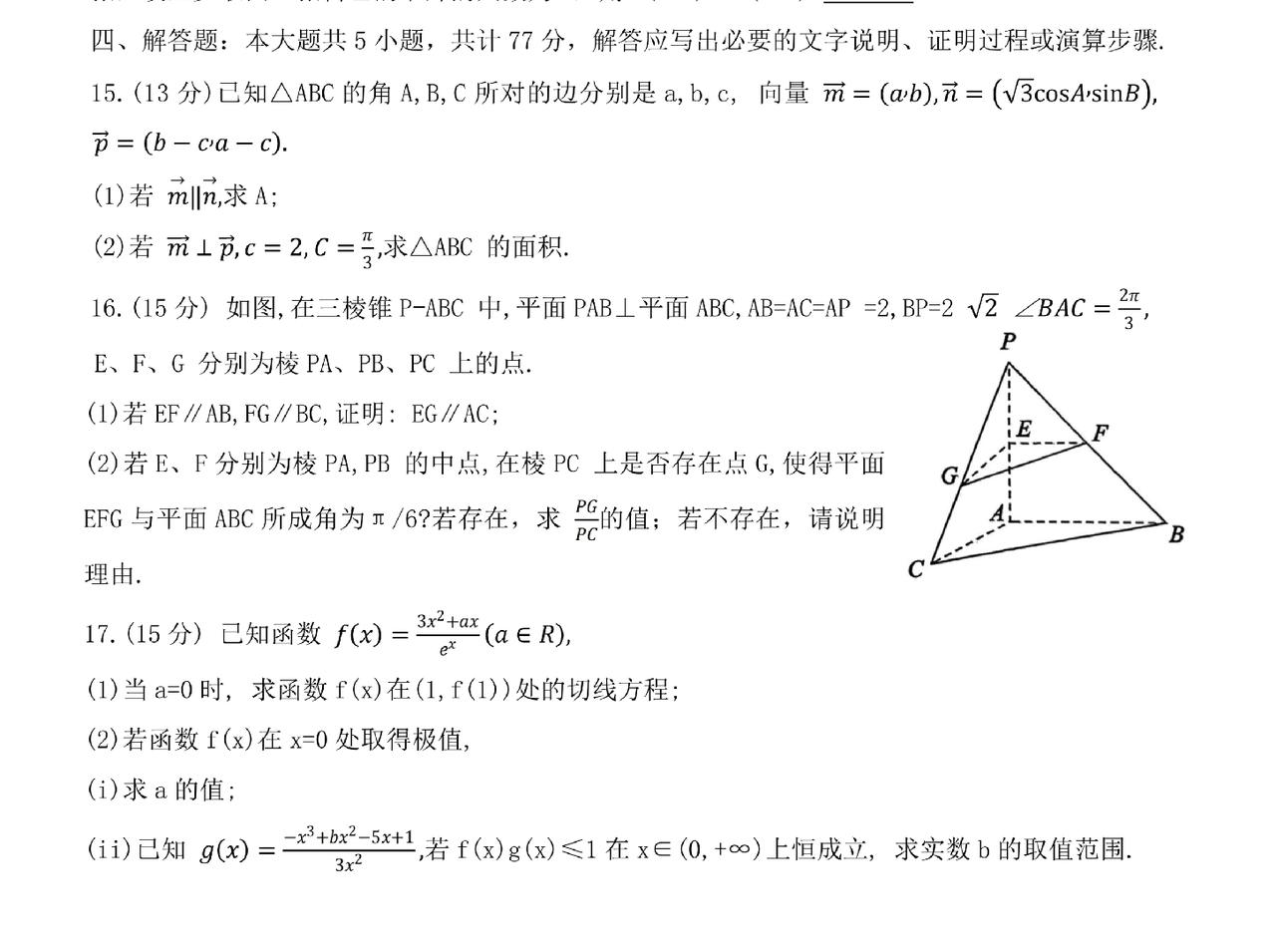 山东菏泽、东营市2023级高三年级一轮验收考试数学大题及其答案。